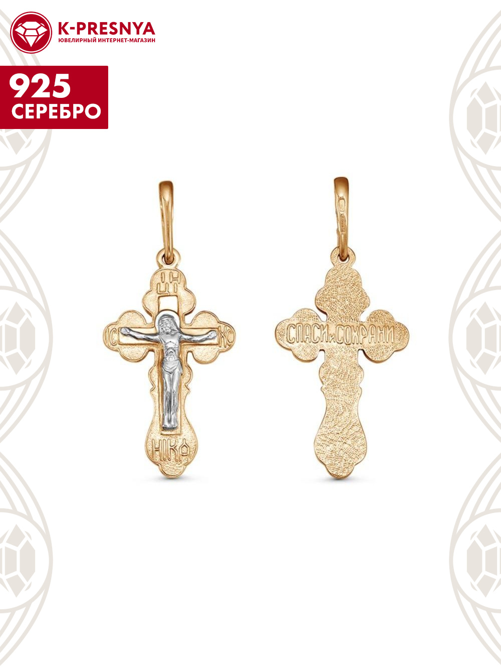 Подвеска серебро 925 пробы, покрытие - золочение, выборочное родирование, без вставок