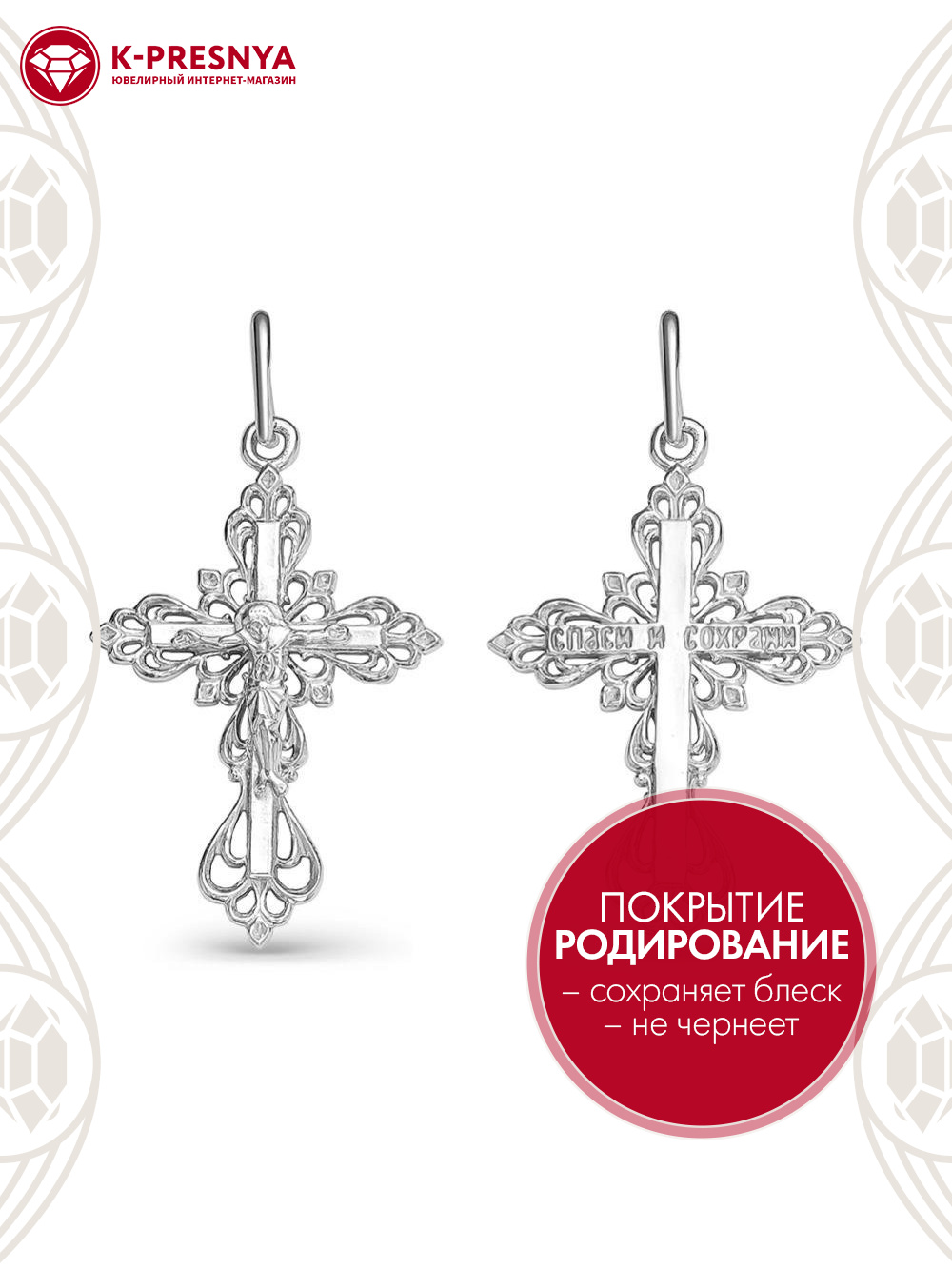 Подвеска серебро 925 пробы, покрытие - родирование, без вставок
