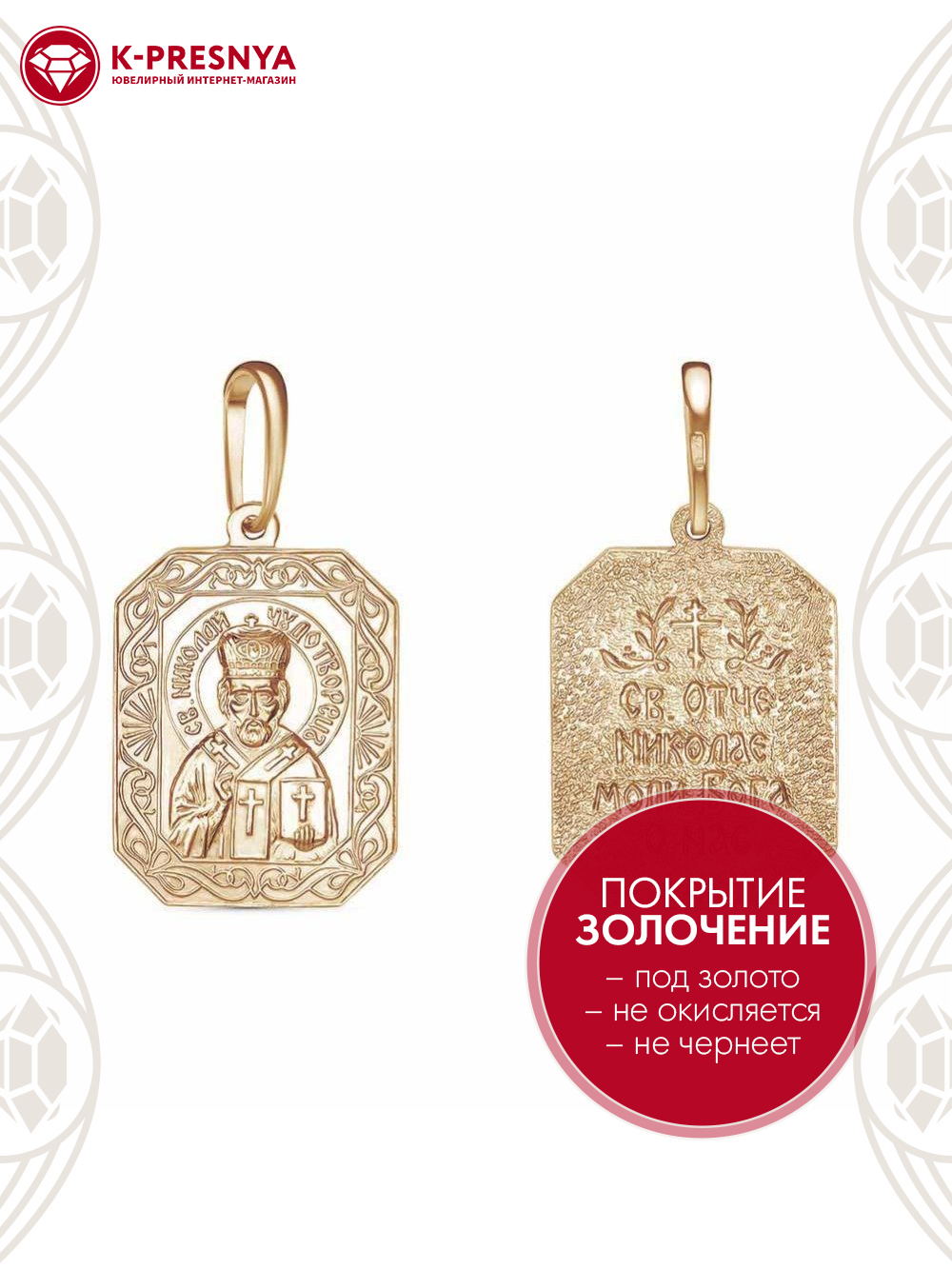 Подвеска бижутерия, покрытие - золочение, без вставок