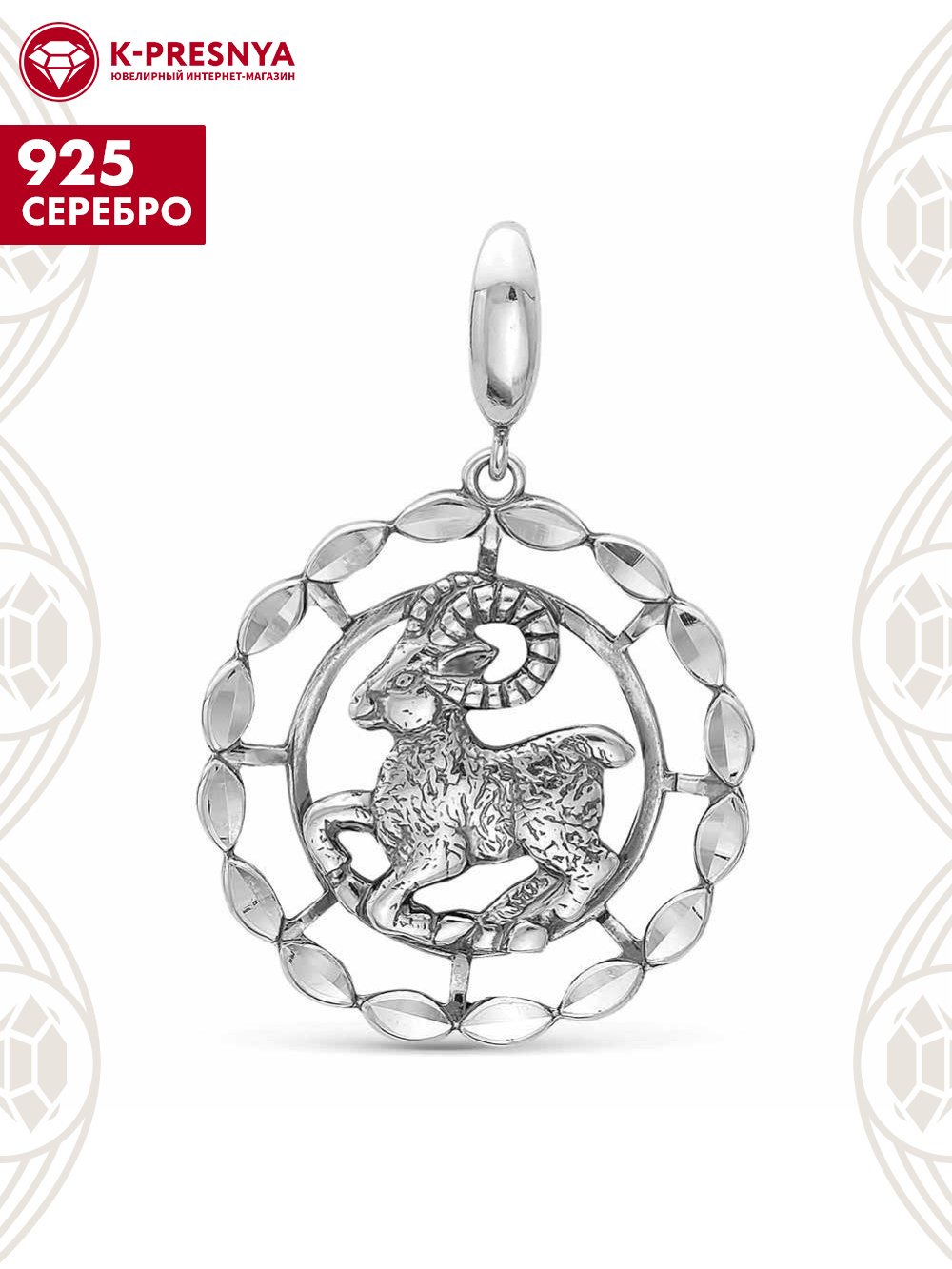 Подвеска "овен" серебро 925 пробы, покрытие - оксидирование, отделка - алмазная грань, без вставок