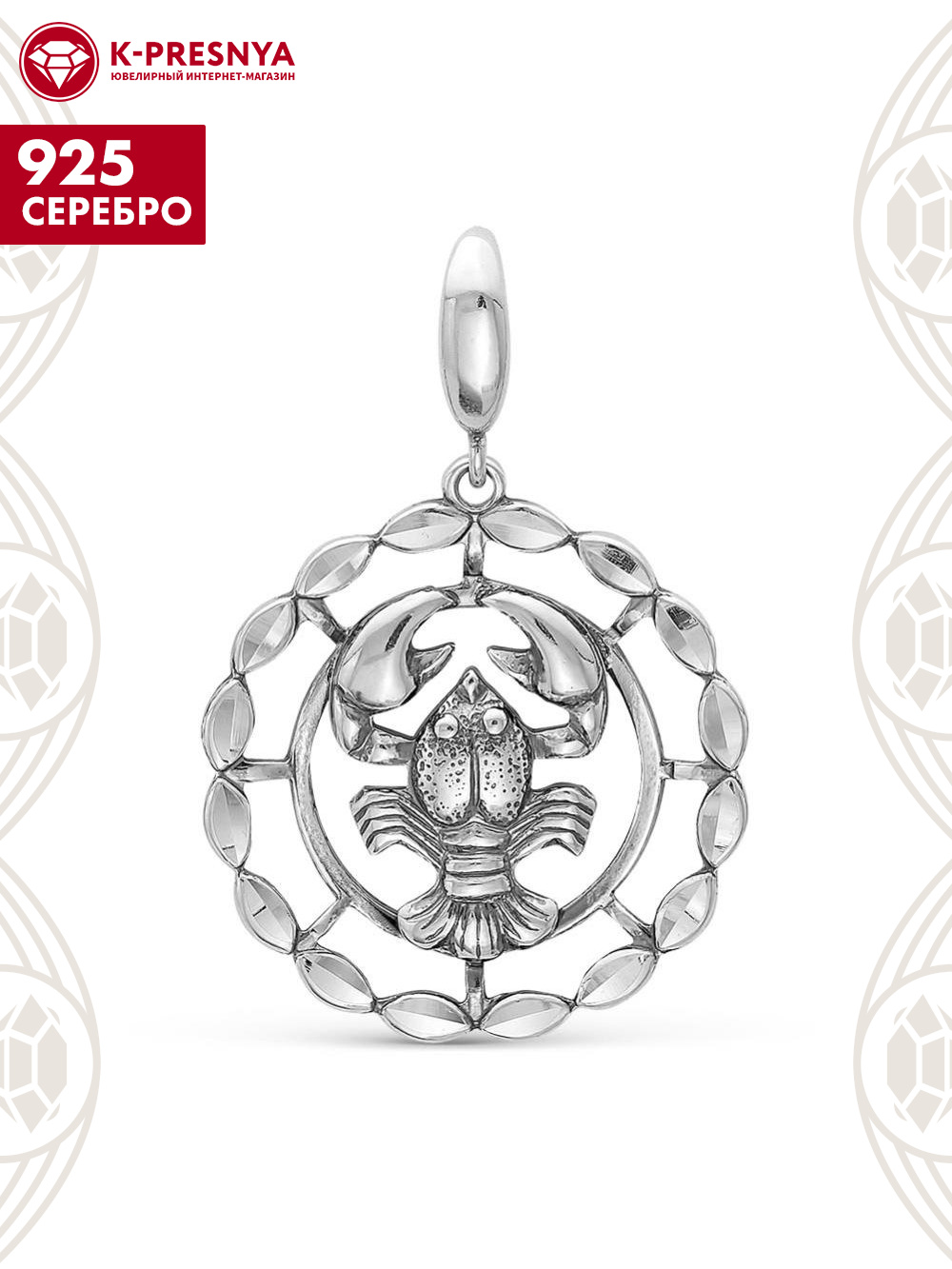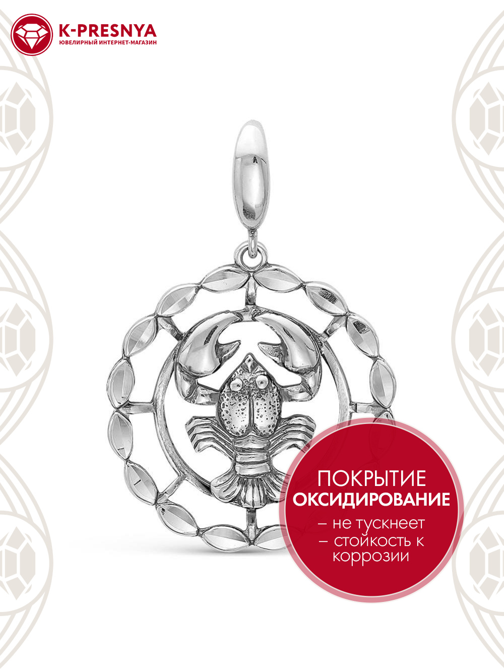 Подвеска "рак" серебро 925 пробы, покрытие - оксидирование, отделка - алмазная грань, без вставок