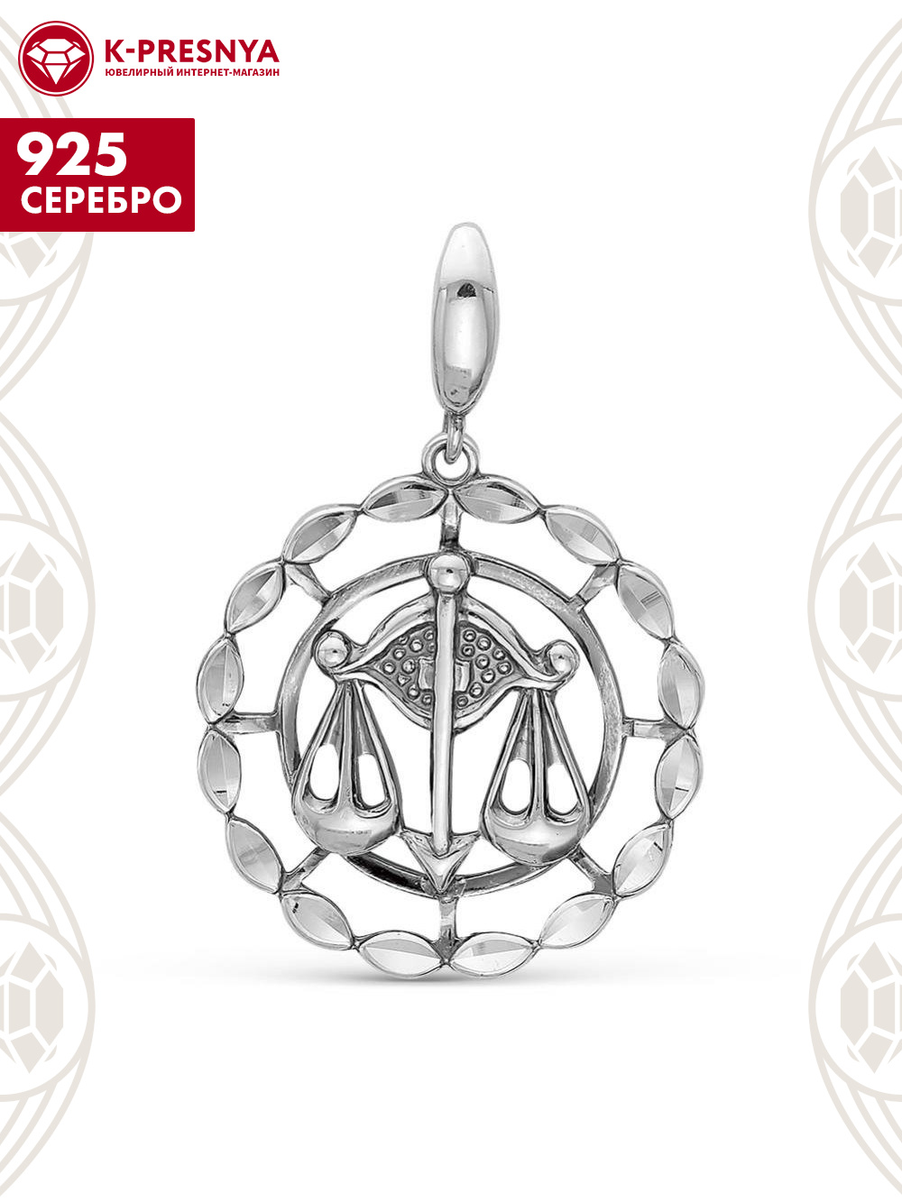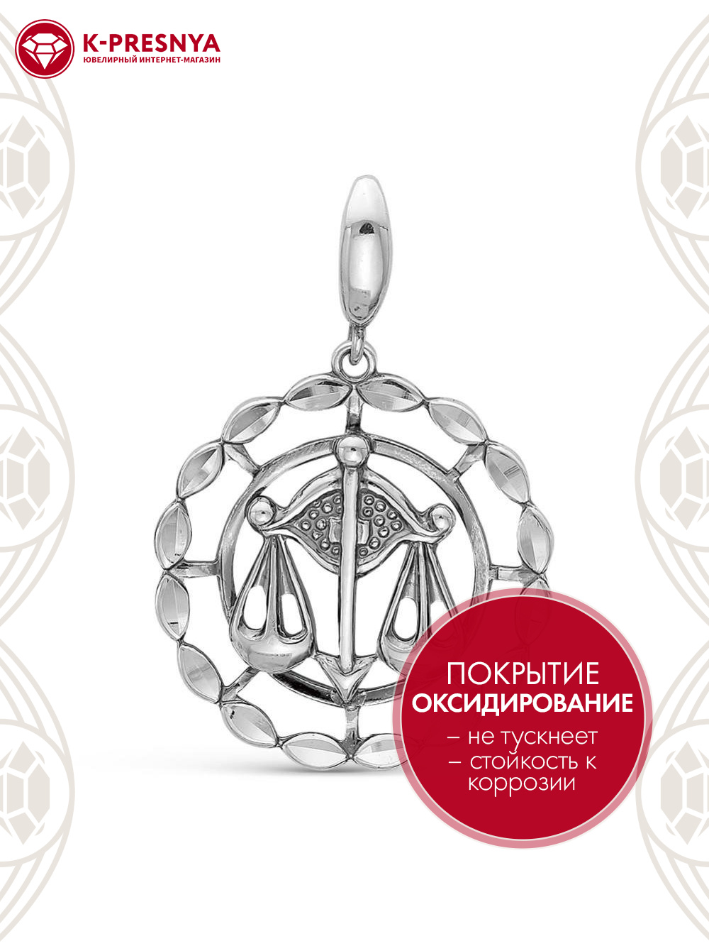 Подвеска "весы" серебро 925 пробы, покрытие - оксидирование, отделка - алмазная грань, без вставок