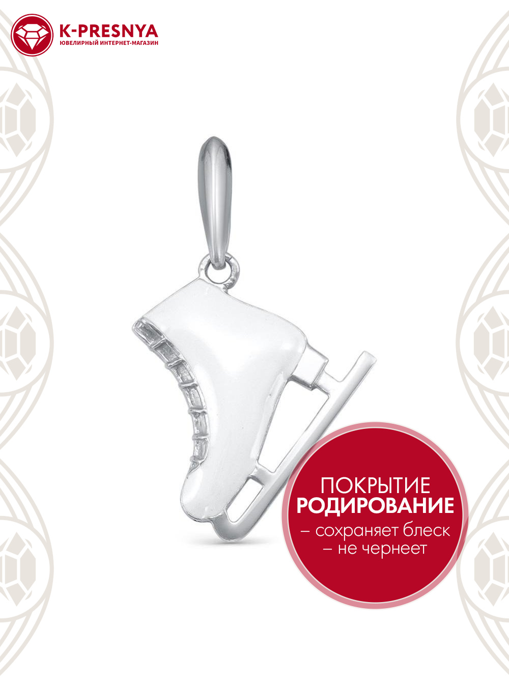 Подвеска серебро 925 пробы, покрытие - родирование, отделка - эмаль, без вставок