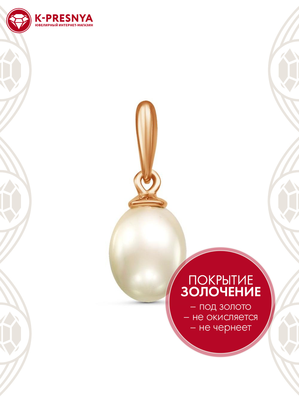 Подвеска серебро 925 пробы, покрытие - золочение, вставка - имитация жемчуга