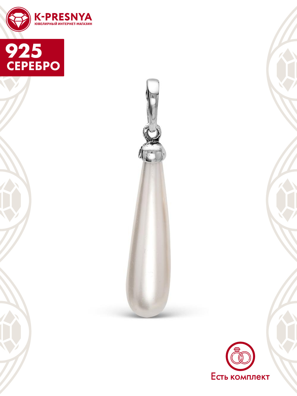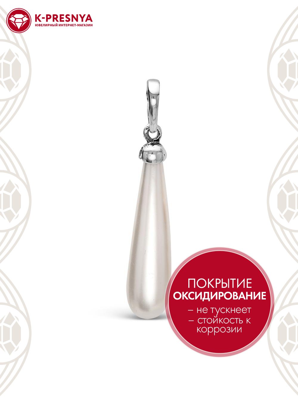 Подвеска серебро 925 пробы, покрытие - оксидирование, вставка - имитация жемчуга