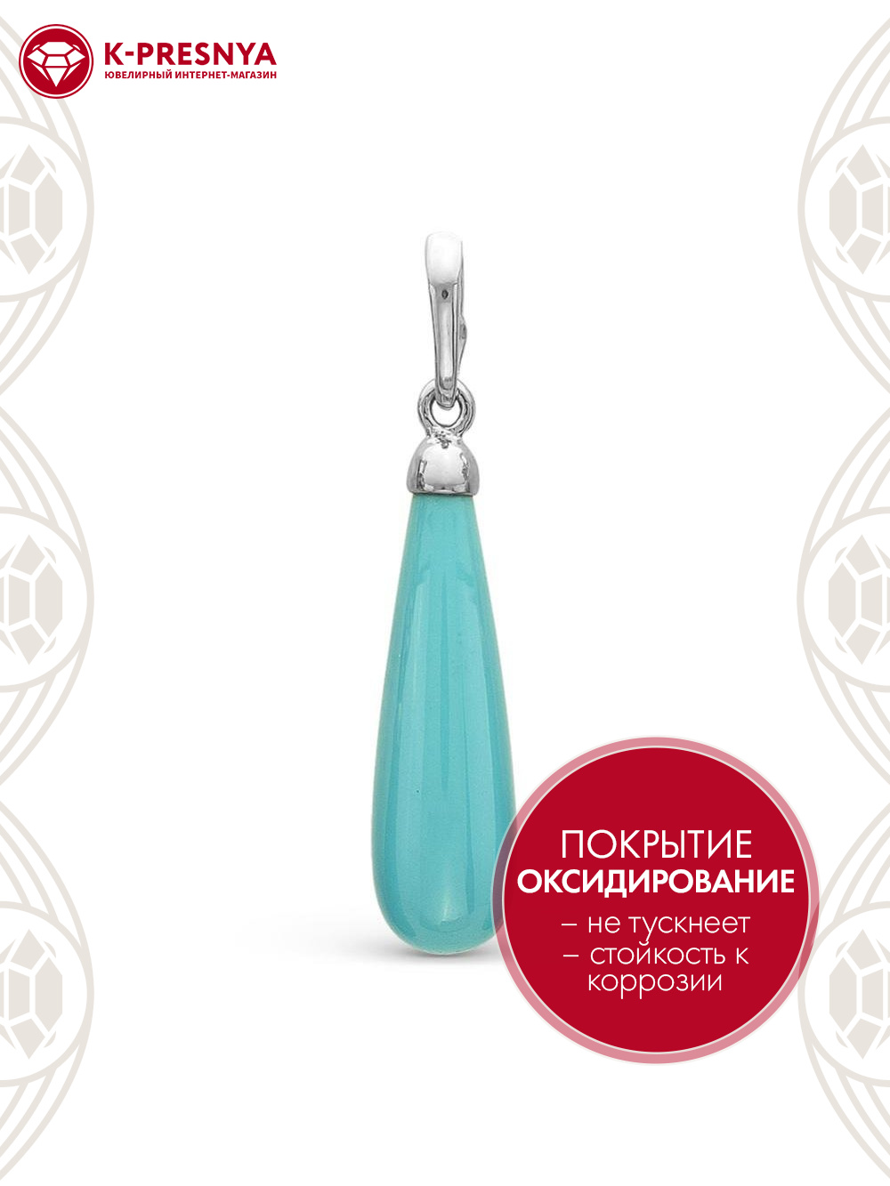 Подвеска серебро 925 пробы, покрытие - оксидирование, вставка - искусственная бирюза