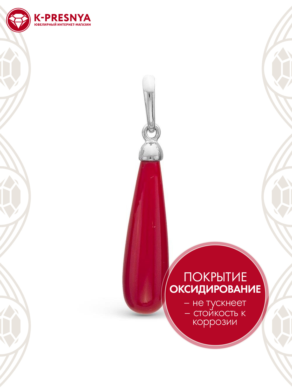 Подвеска серебро 925 пробы, покрытие - оксидирование, вставка - искусственный коралл