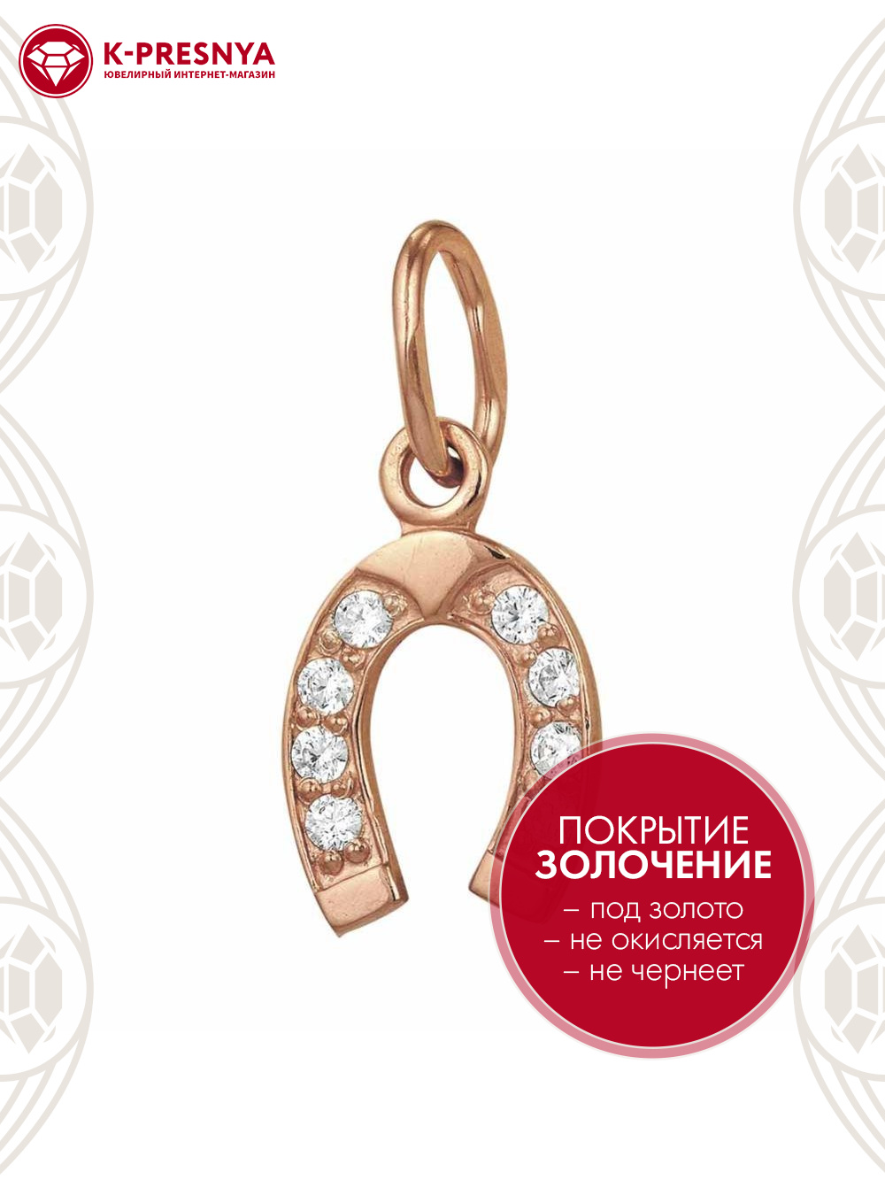 Подвеска серебро 925 пробы, покрытие - золочение, вставка - фианит (недрагоценный камень)