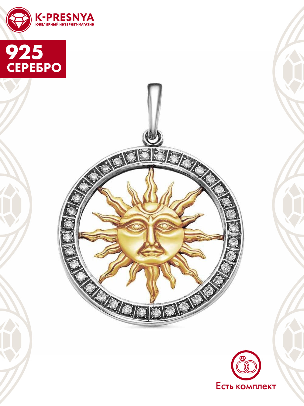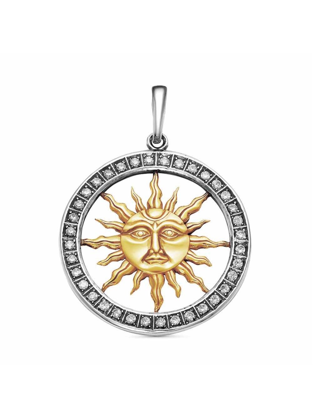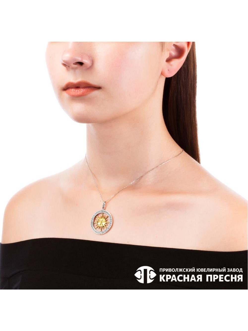 Подвеска серебро 925 пробы, покрытие - оксидирование, выборочное золочение, вставка - фианит (недрагоценный камень)