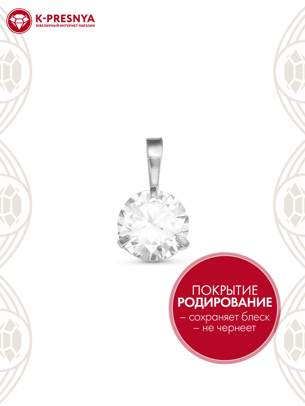 Подвеска серебро 925 пробы, покрытие - родирование, вставка - фианит (недрагоценный камень)