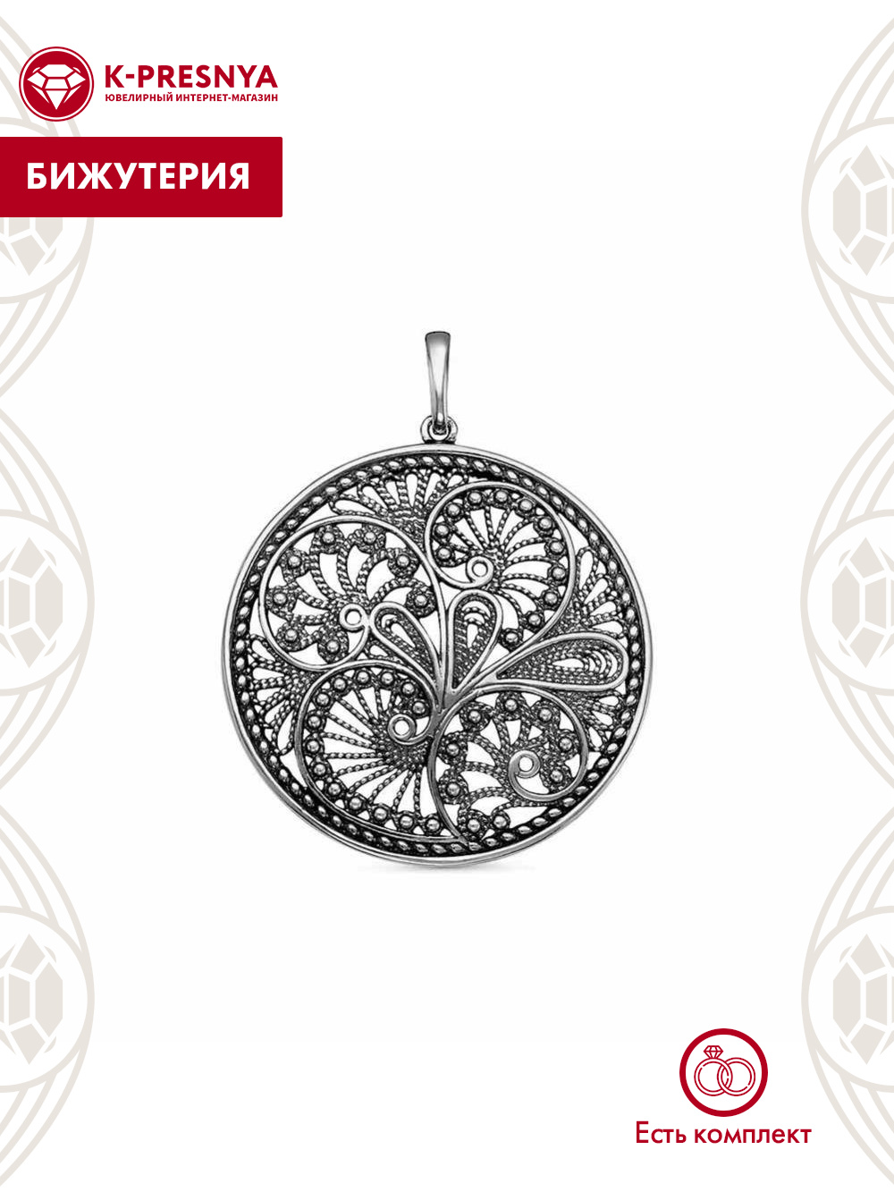 Подвеска бижутерия, покрытие - серебрение с оксидированием, без вставок