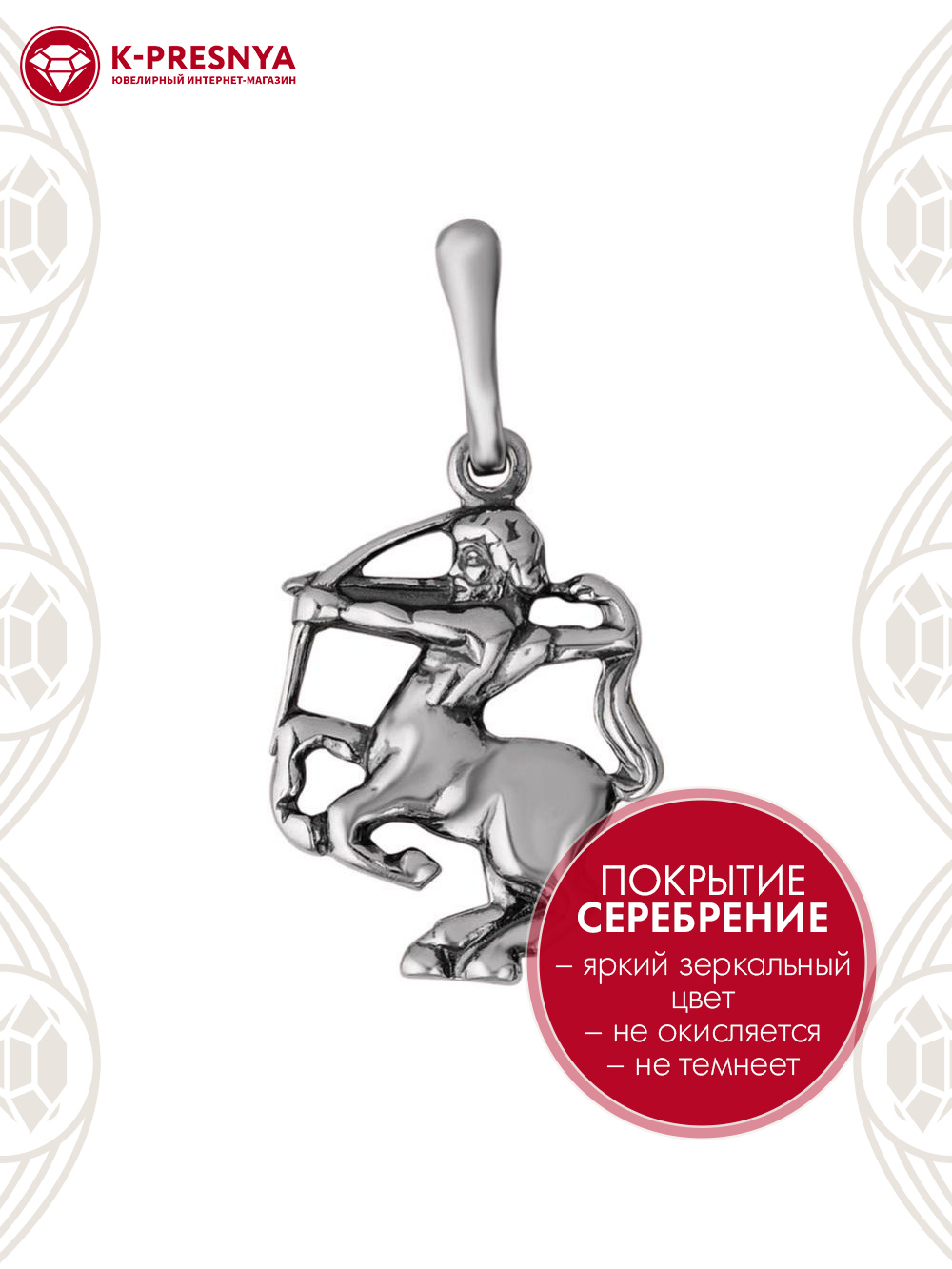 Подвеска бижутерия, покрытие - серебрение с оксидированием, без вставок