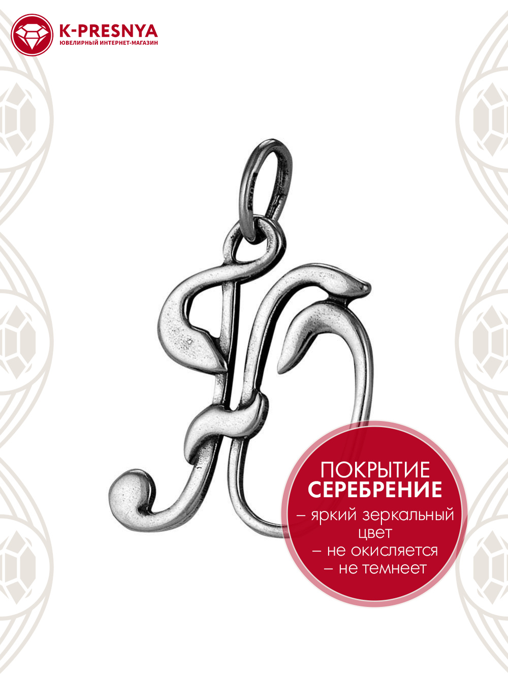 Подвеска бижутерия, покрытие - серебрение с оксидированием, без вставок