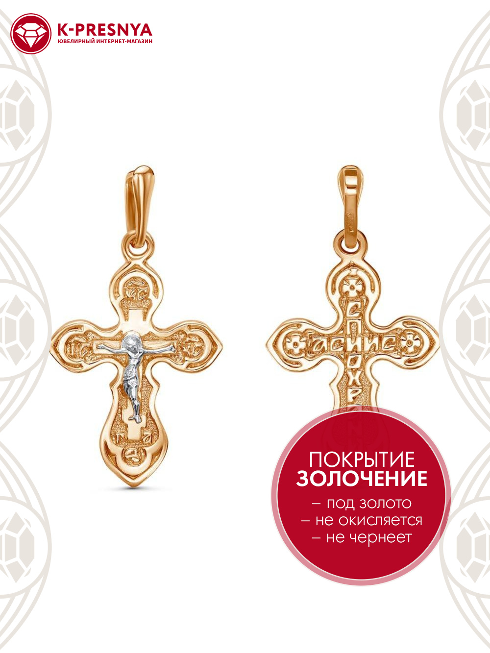 Подвеска бижутерия, покрытие - золочение, выборочное родирование, без вставок