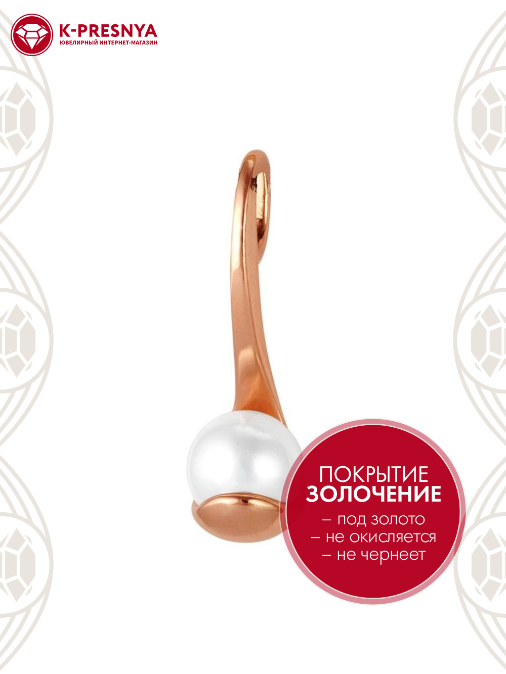 Подвеска бижутерия, покрытие - золочение, вставка - имитация жемчуга