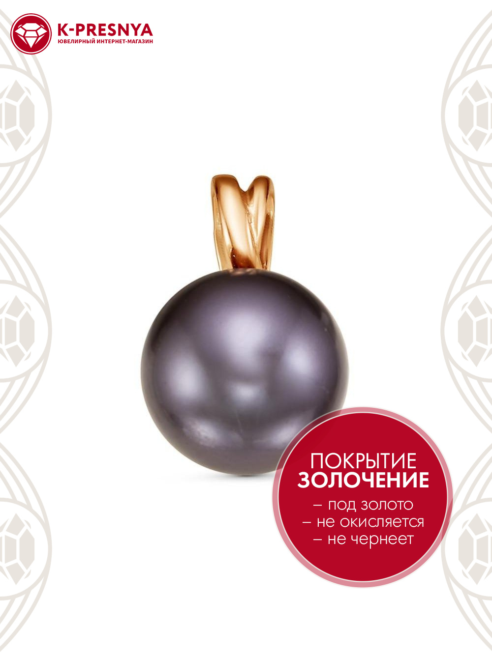 Подвеска бижутерия, покрытие - золочение, вставка - имитация жемчуга