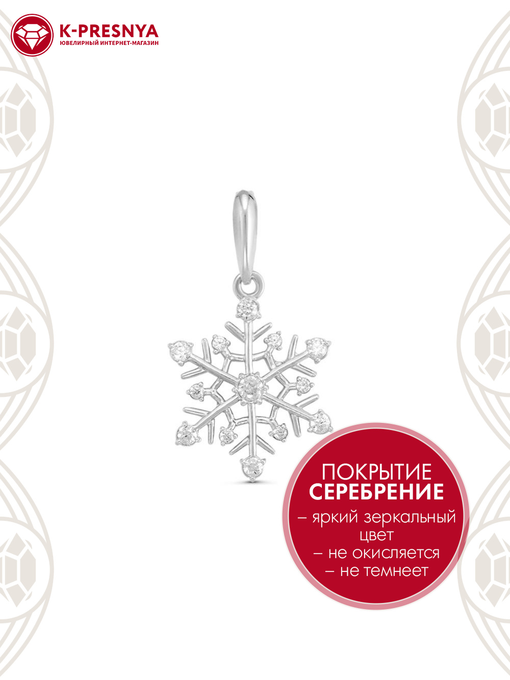 Подвеска бижутерия, покрытие - серебрение, вставка - фианит (недрагоценный камень)