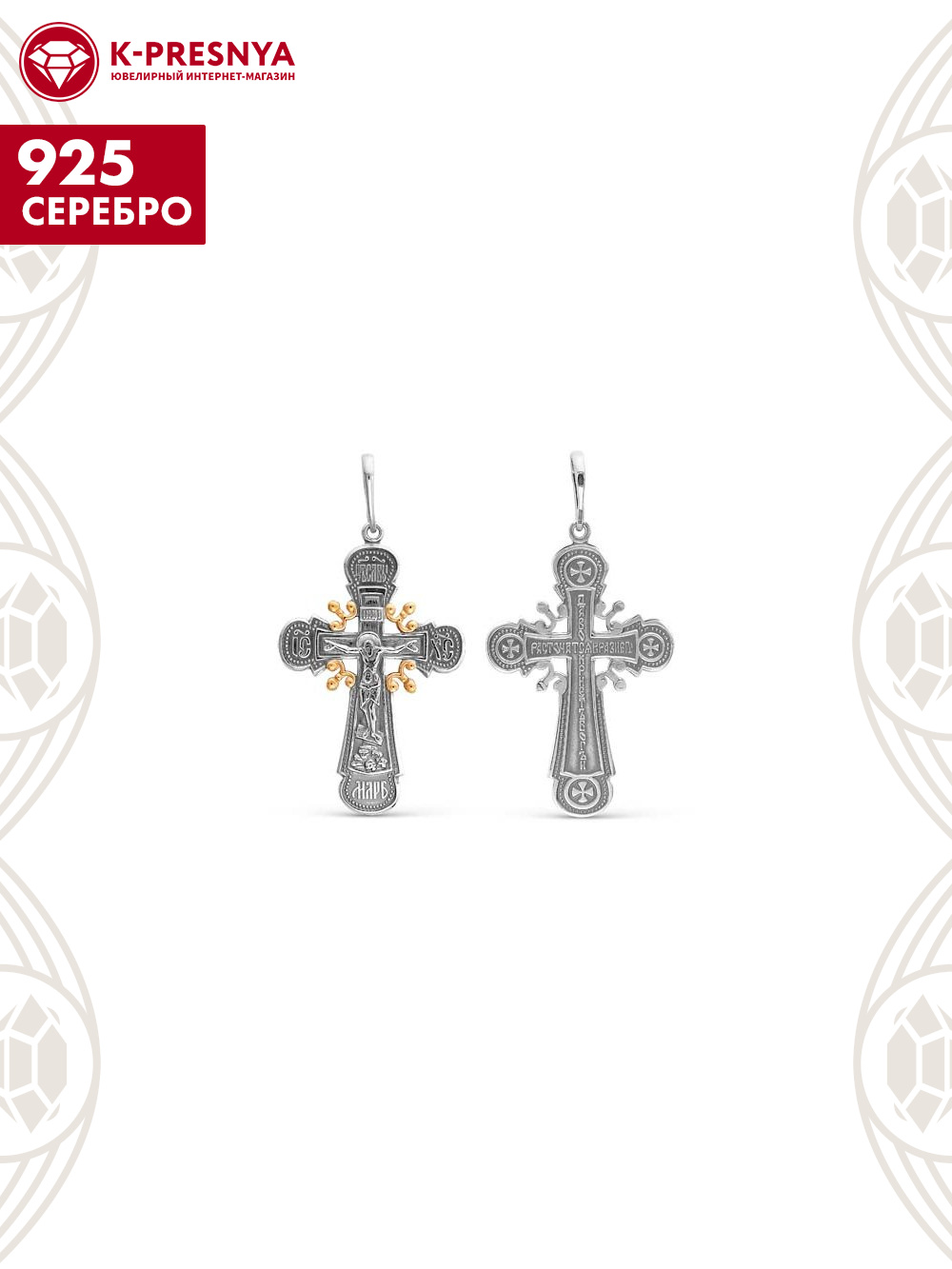 Подвеска серебро 925 пробы, покрытие - оксидирование, выборочное золочение, без вставок