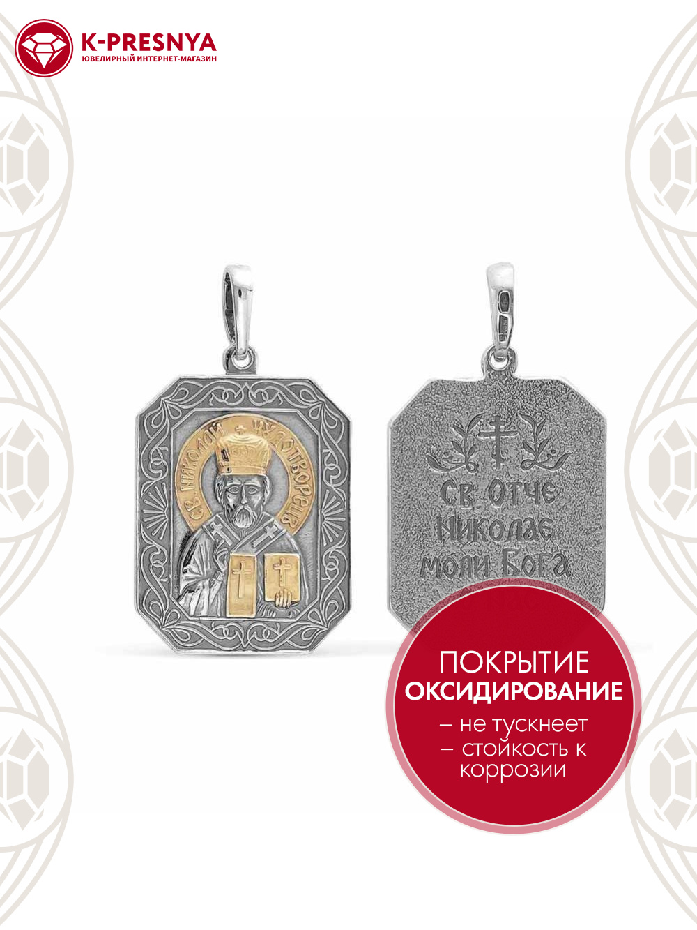 Подвеска серебро 925 пробы, покрытие - оксидирование, выборочное золочение, без вставок