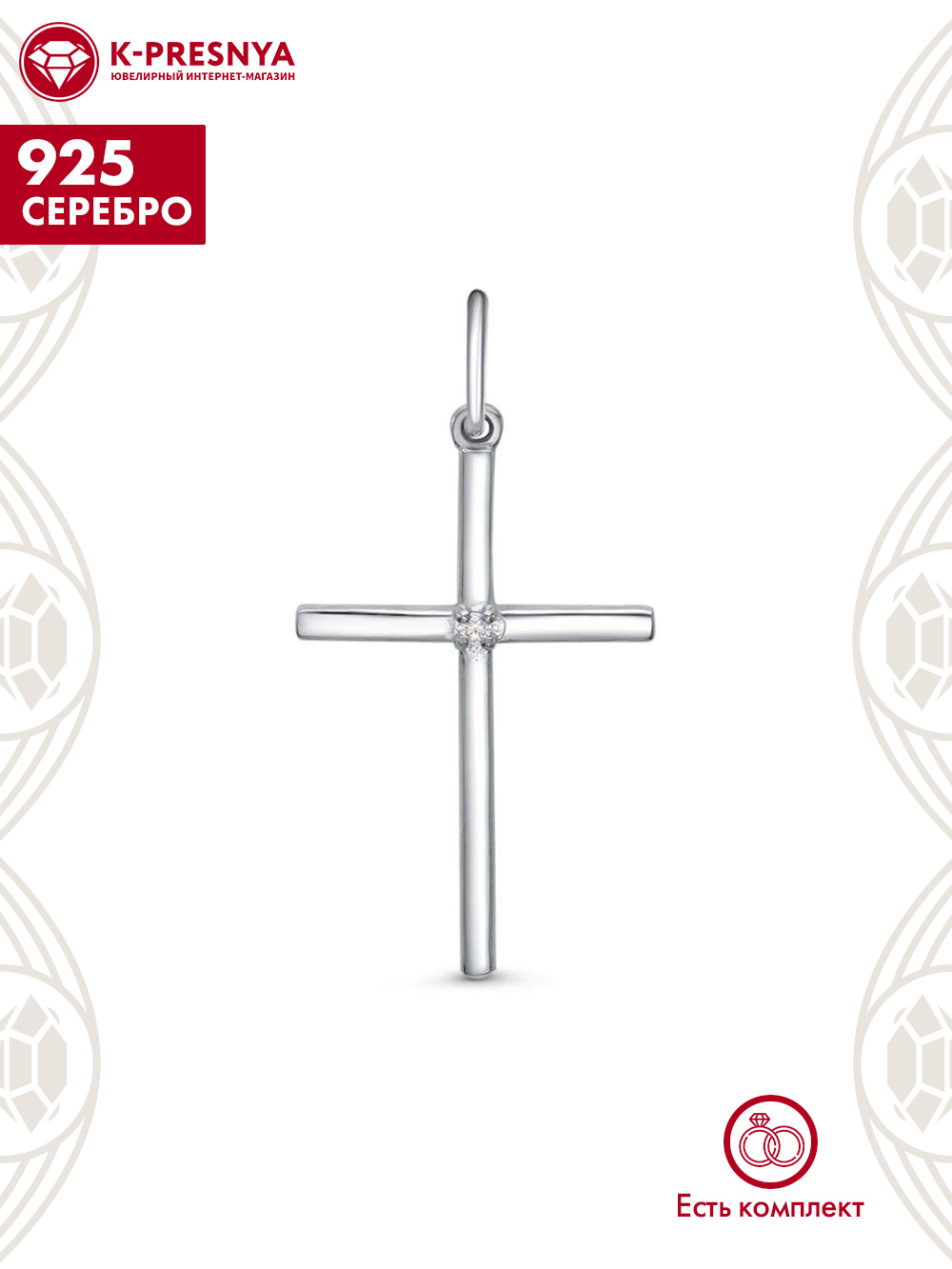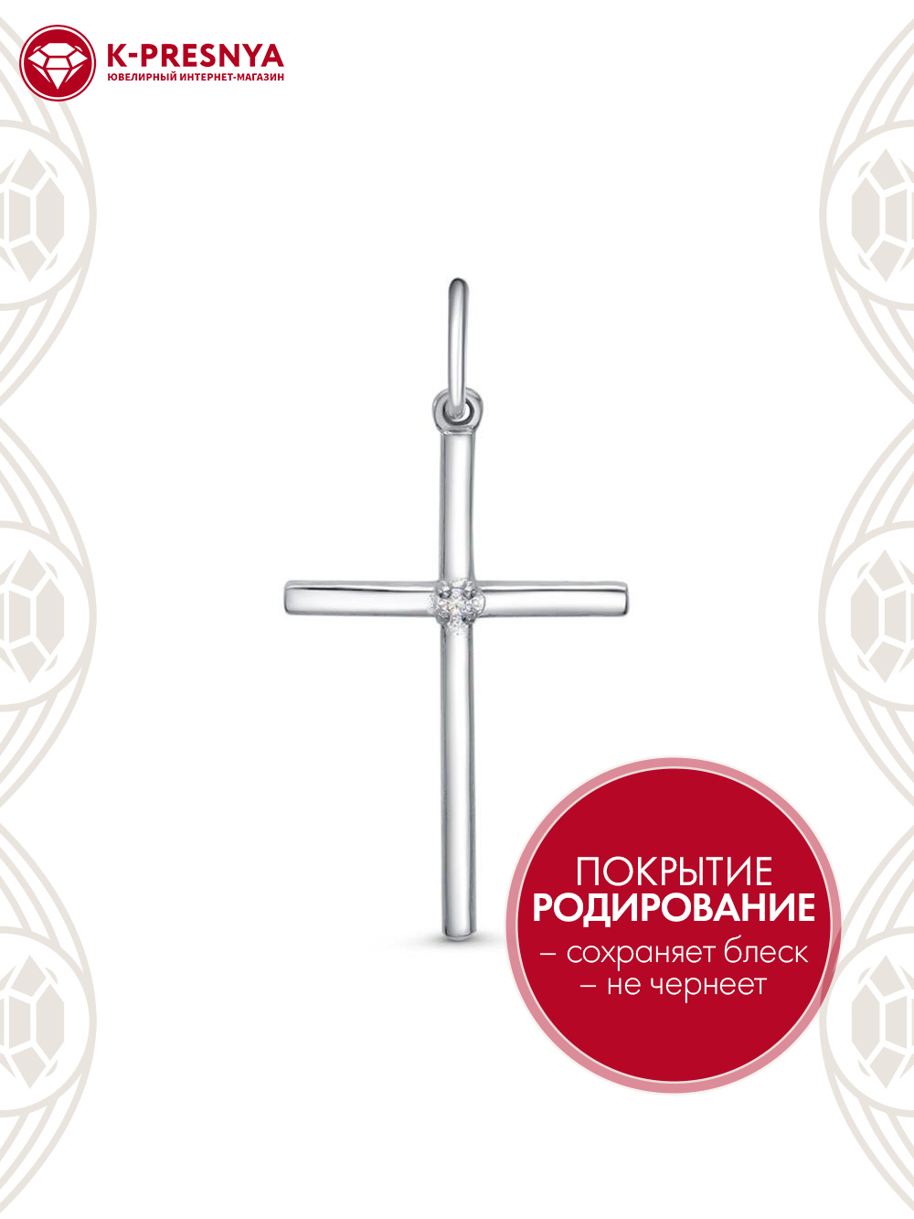 Подвеска серебро 925 пробы, покрытие - родирование, вставка - фианит (недрагоценный камень)