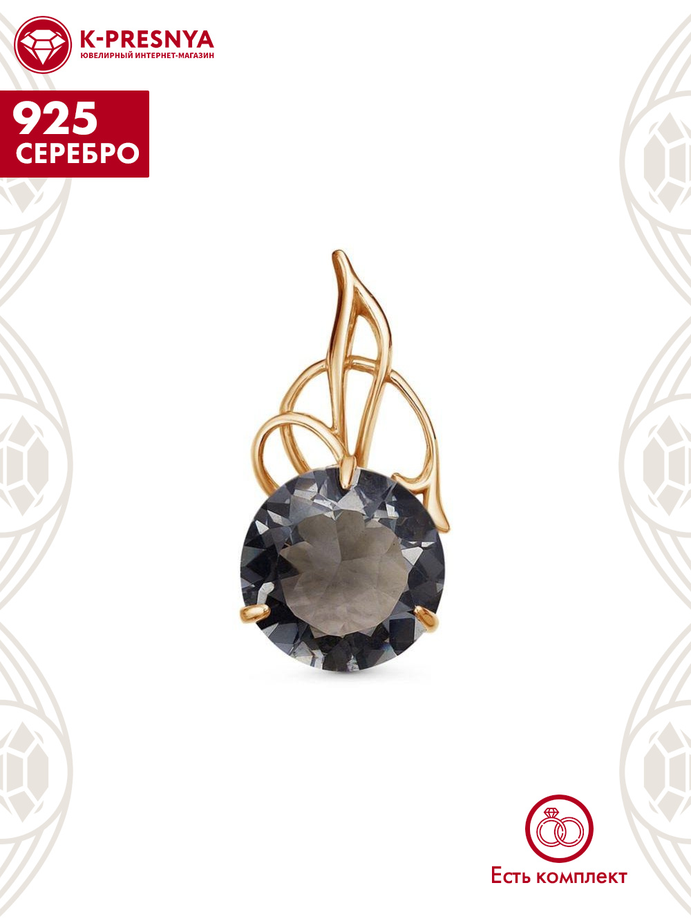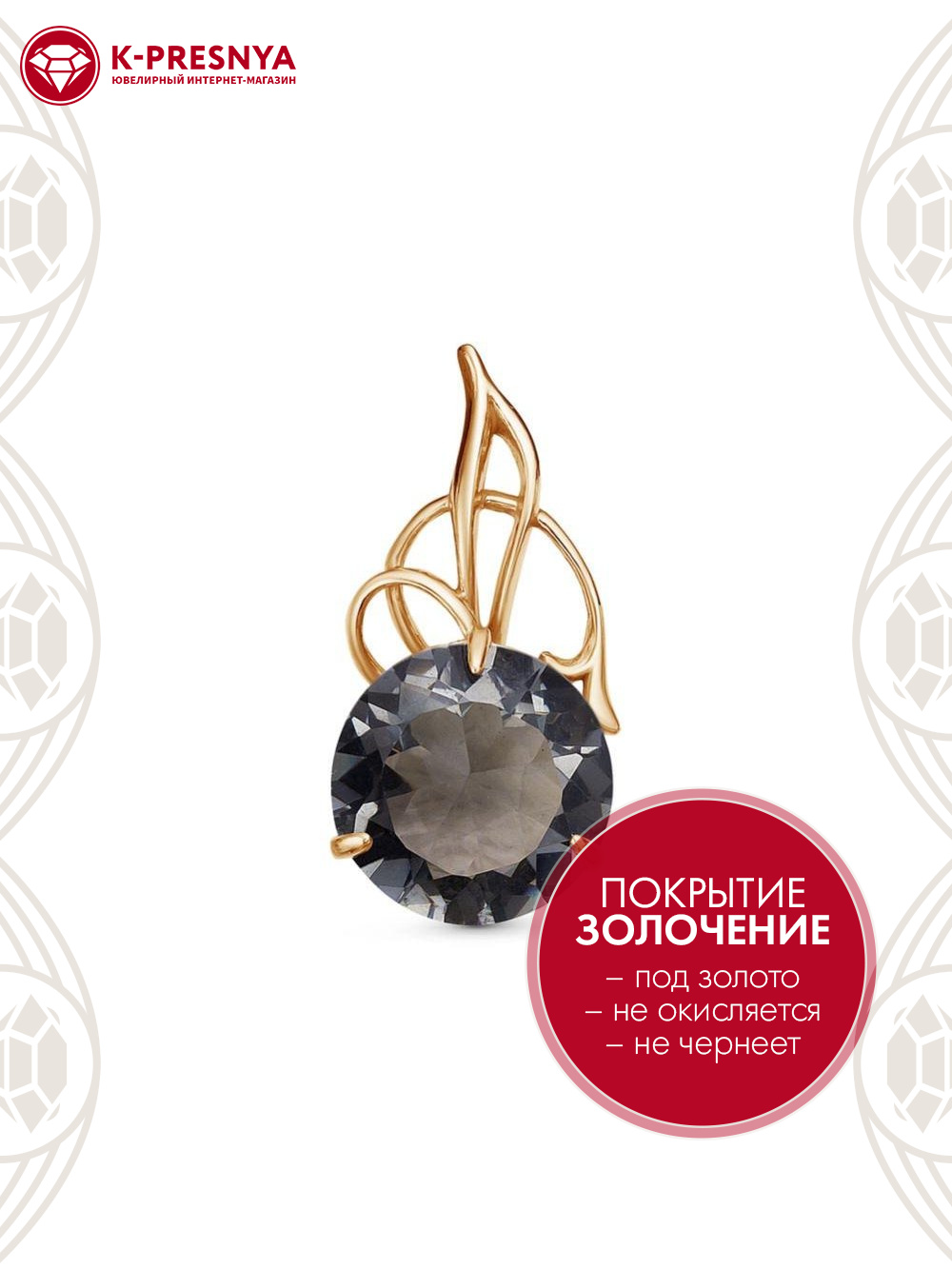 Подвеска серебро 925 пробы, покрытие - золочение, вставка - искусственный дымчатый кварц