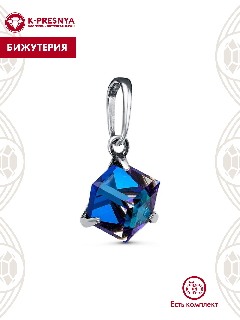 Подвеска бижутерия, покрытие - серебрение с оксидированием, вставка - ювелирное стекло европейской огранки