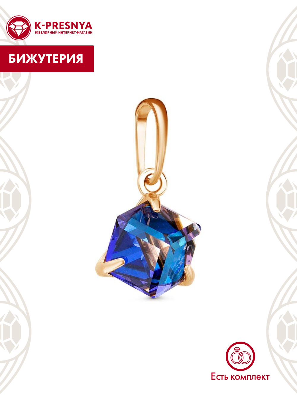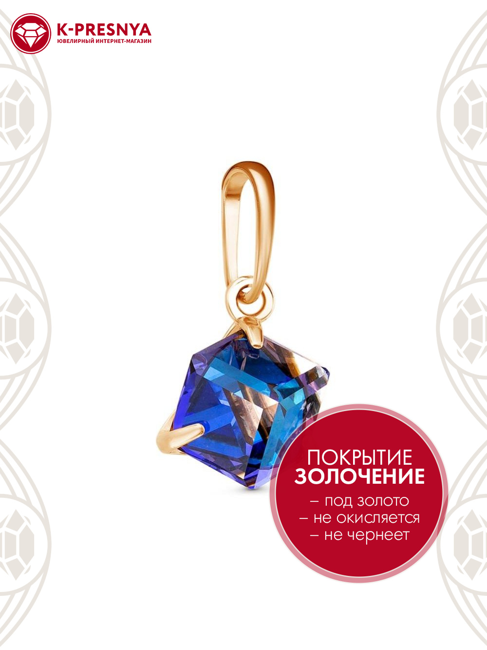 Подвеска бижутерия, покрытие - золочение, вставка - ювелирное стекло европейской огранки
