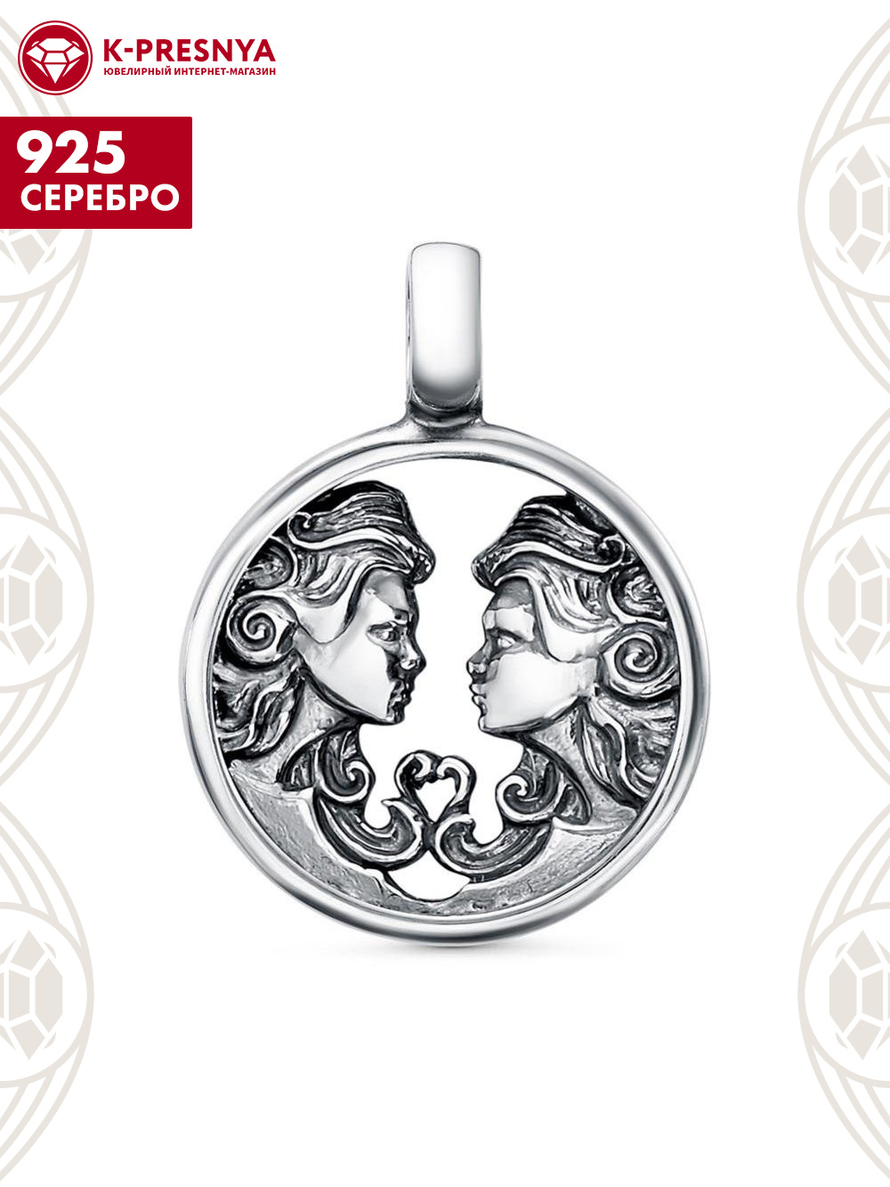 Подвеска "близнецы" серебро 925 пробы, покрытие - оксидирование, без вставок