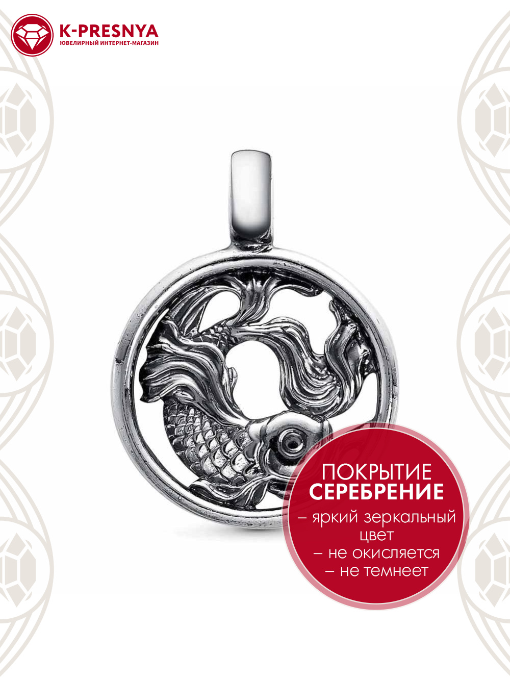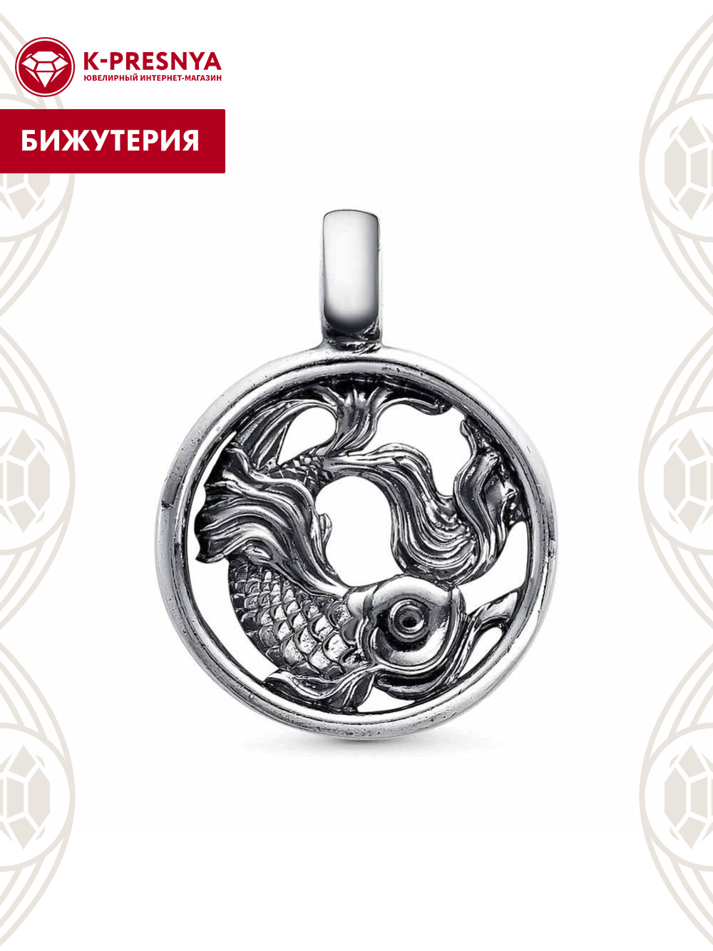 Подвеска "рыбы" бижутерия, покрытие - серебрение с оксидированием, без вставок