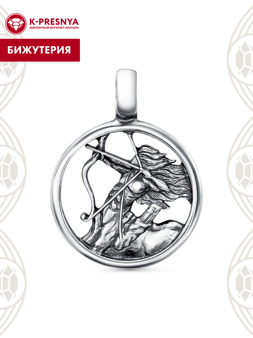 Подвеска "стрелец" бижутерия, покрытие - серебрение с оксидированием, без вставок