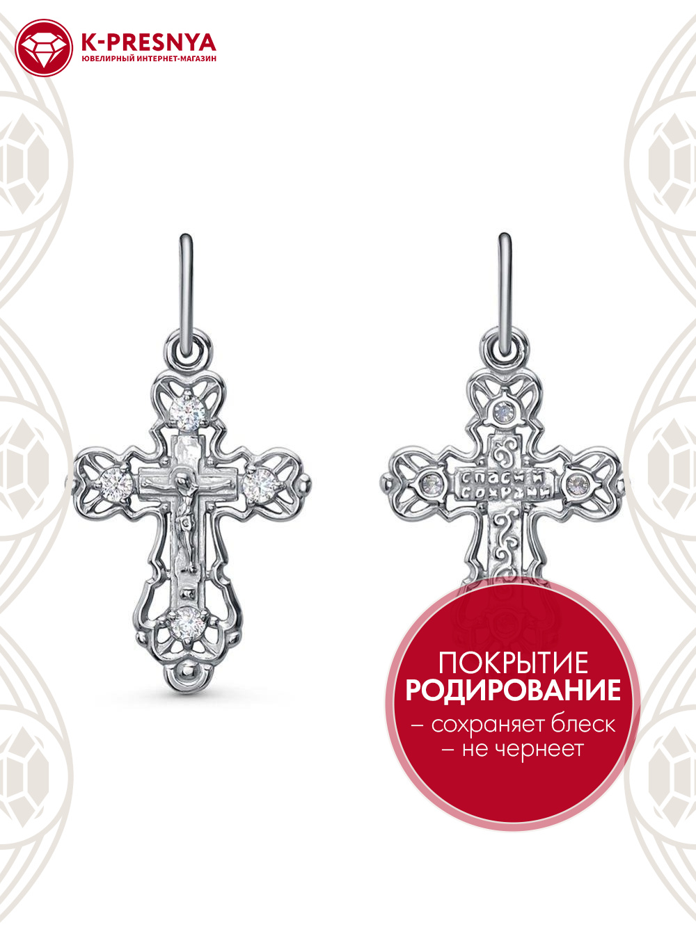 Подвеска серебро 925 пробы, покрытие - родирование, вставка - фианит (недрагоценный камень)