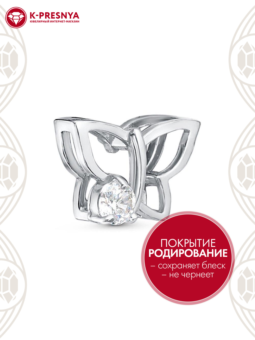 Подвеска серебро 925 пробы, покрытие - родирование, вставка - фианит (недрагоценный камень)