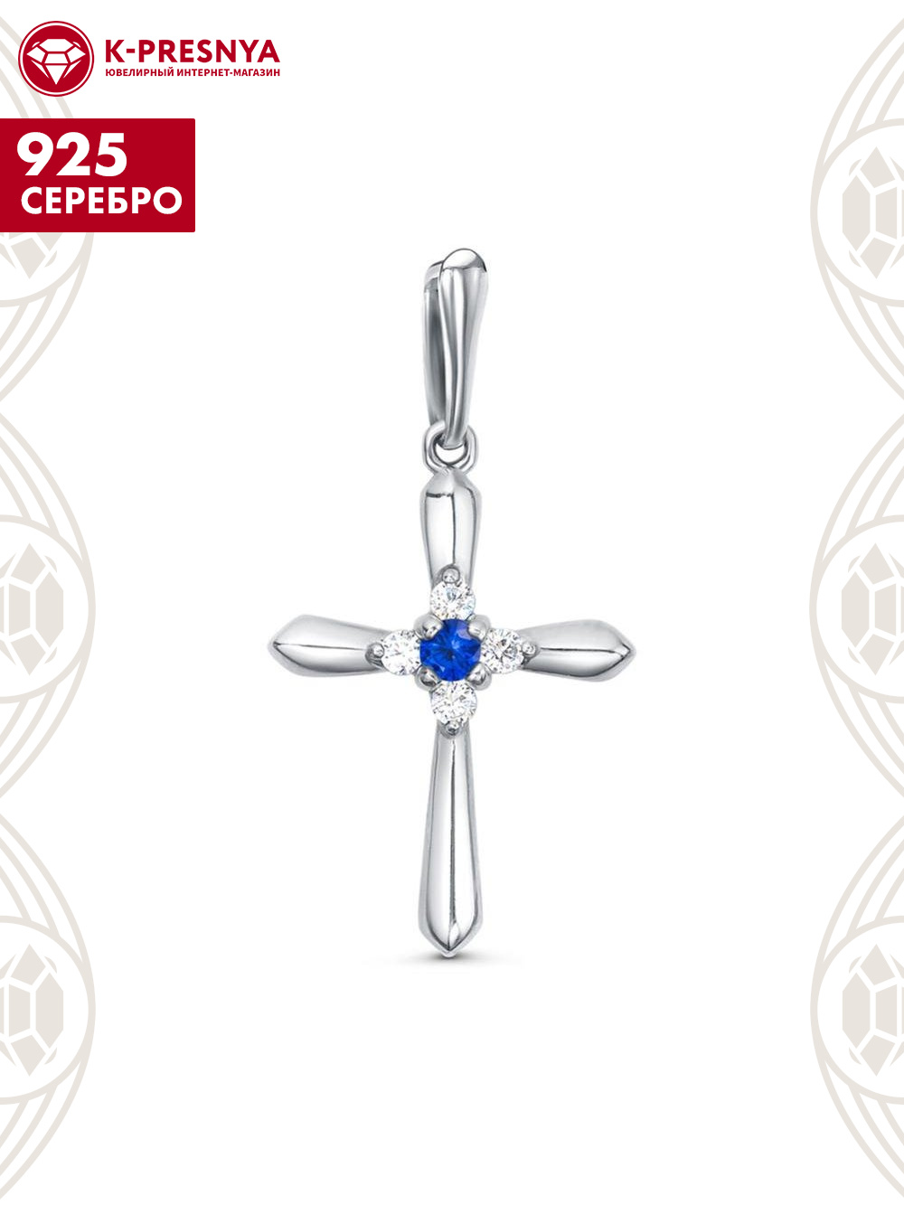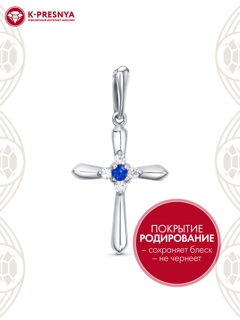 Подвеска серебро 925 пробы, покрытие - родирование, вставка - искусственная шпинель, фианит (недрагоценный камень)