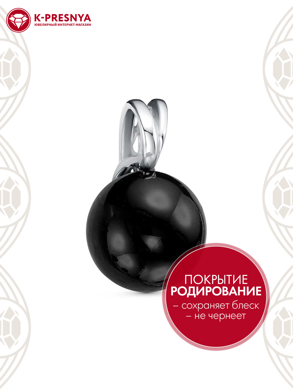 Подвеска серебро 925 пробы, покрытие - родирование, вставка - имитация жемчуга