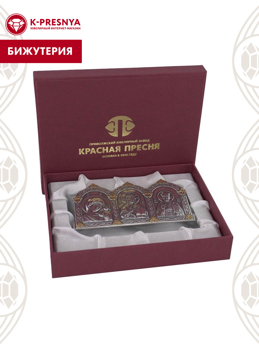 Икона бижутерия, покрытие - серебрение с оксидированием, выборочное золочение, без вставок