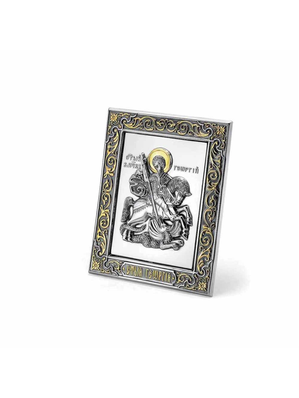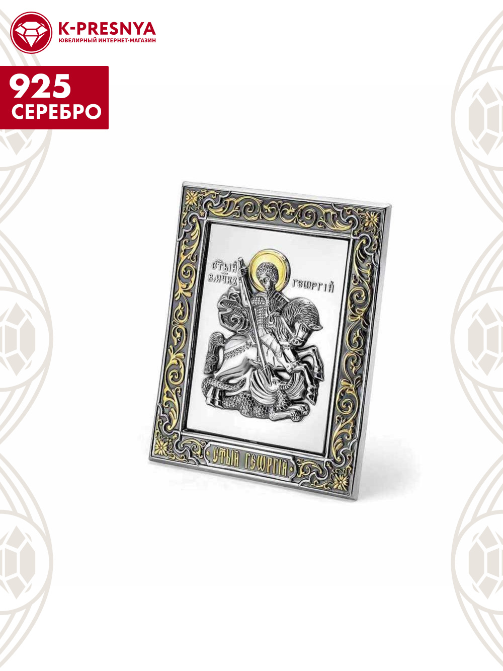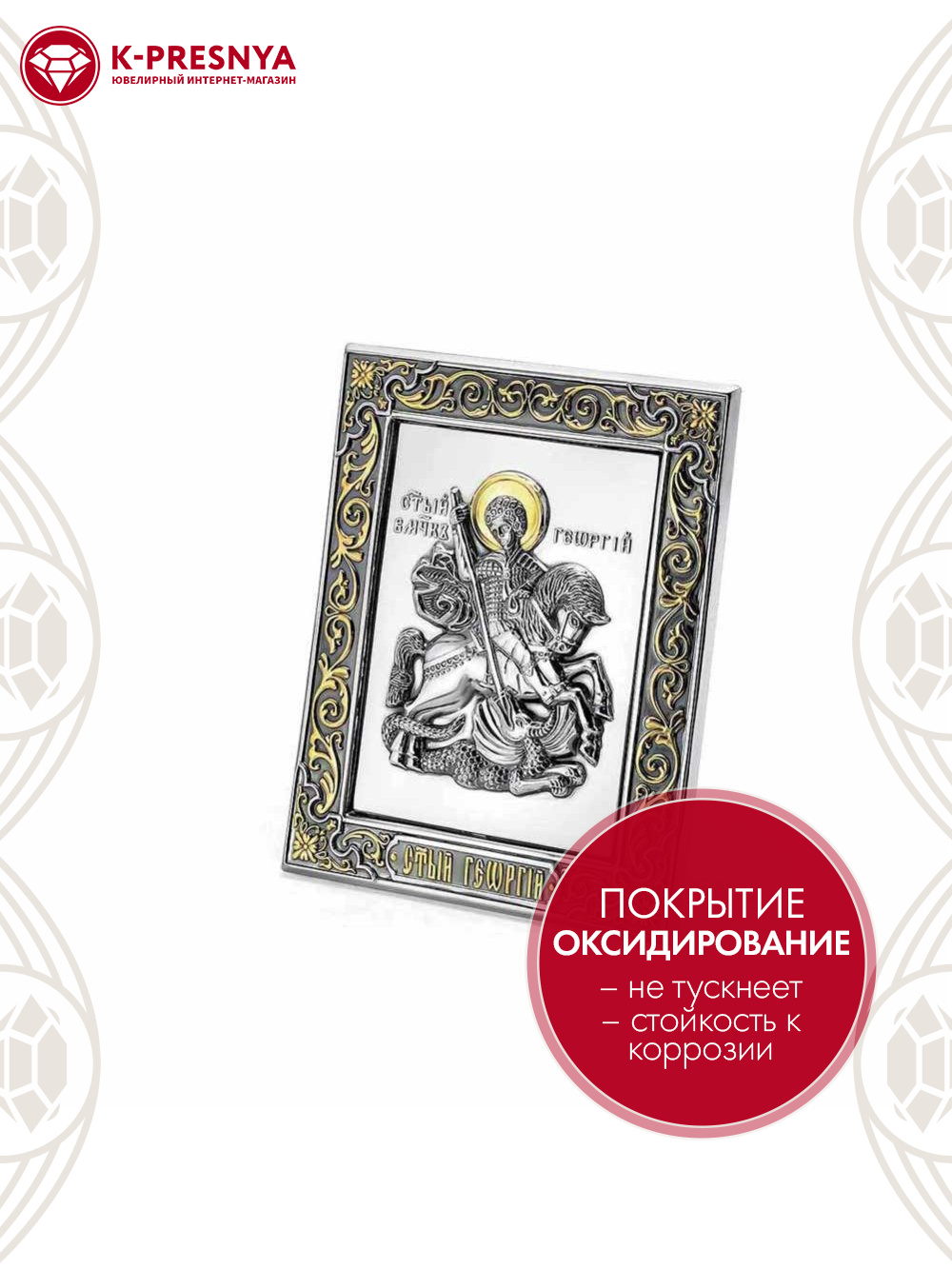 Икона "георгий победоносец" серебро 925 пробы, покрытие - оксидирование, выборочное золочение, без вставок