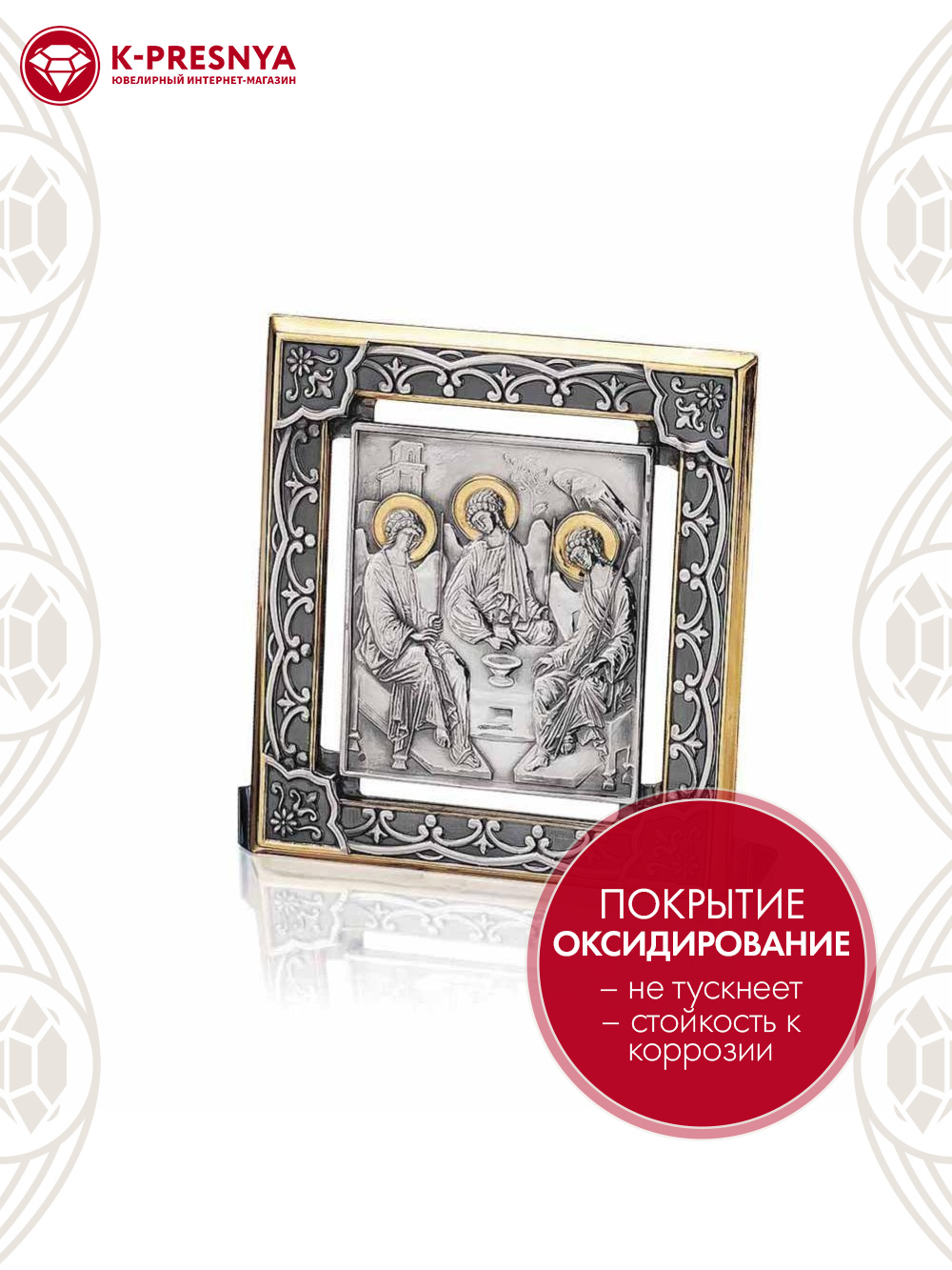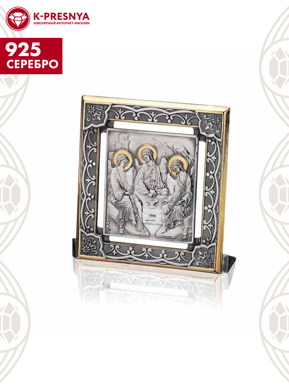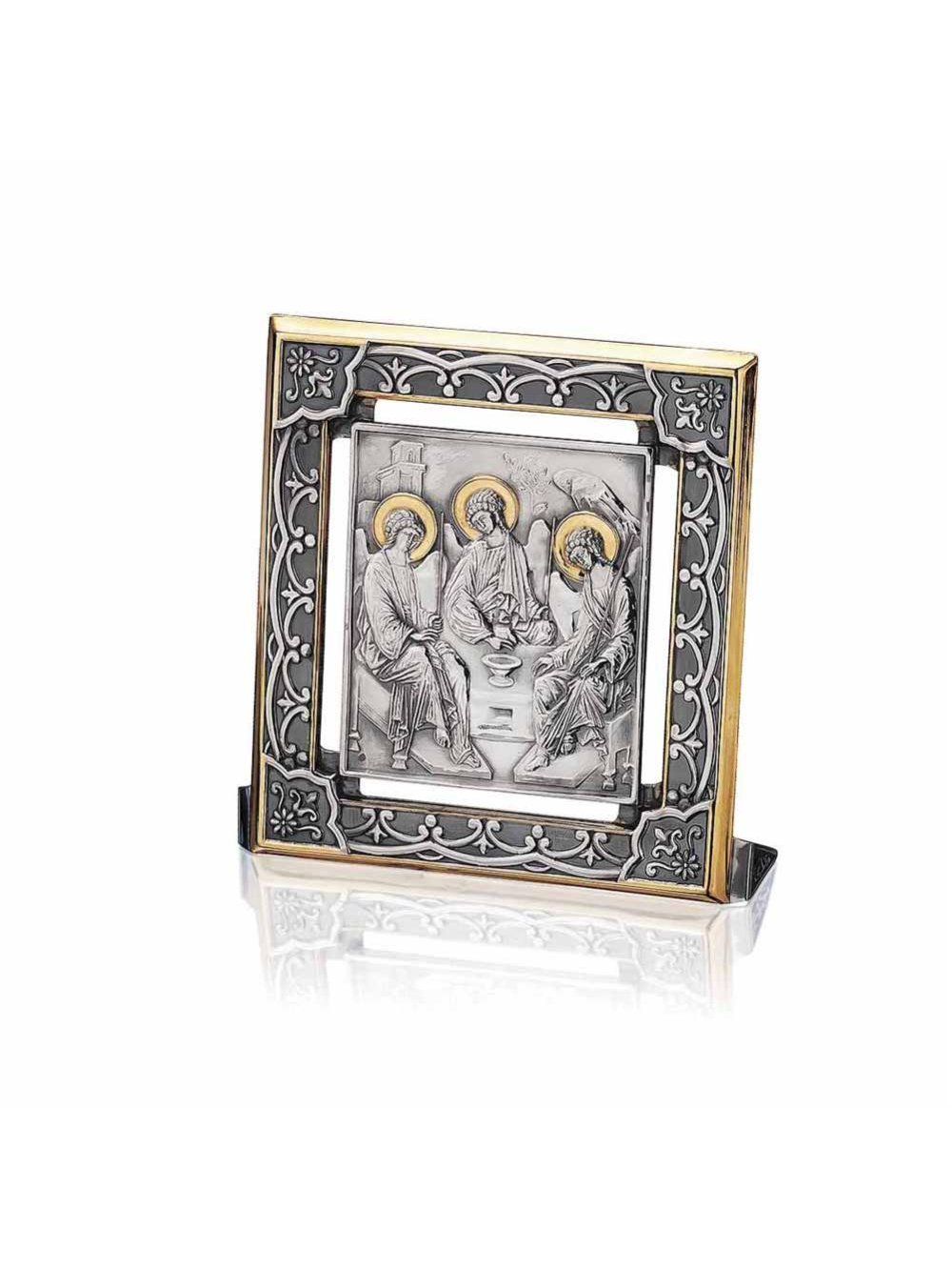 Икона "троица ветхозаветная" серебро 925 пробы, покрытие - оксидирование, выборочное золочение, без вставок