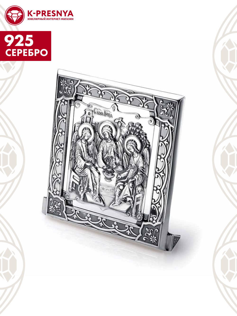Икона серебро 925 пробы, покрытие - оксидирование, без вставок