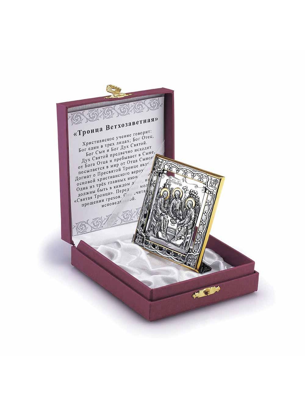 Троица Ветхозаветная. Христианское учение говорит: Бог един в трех лицах; Бог Отец, Бог Сын и Бог Дух Святой. Дух Святой предвечно исходит от Бога Отца и пребывает в Сыне, посылается в мир от Отца Сыном. Догмат о Пресвятой Троице является основой христианского вероучения. Одна из трёх главных икон, которые должны быть в каждом доме, икона «Святая Троица». Перед ней молятся о прощении грехов. Она считается исповедальной.