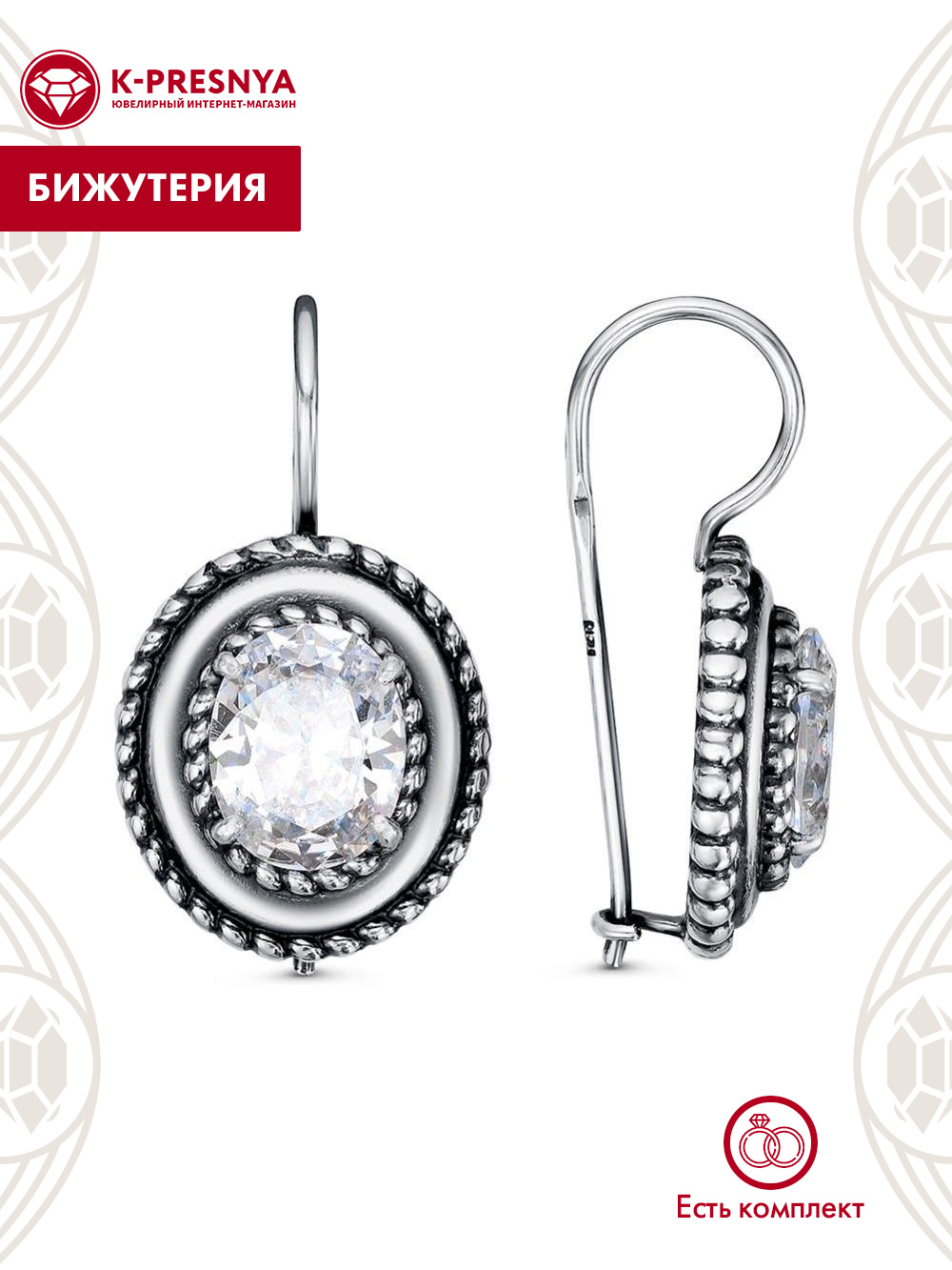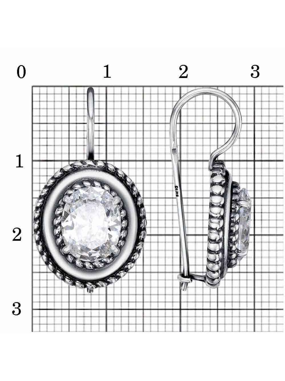 Серьги бижутерия, покрытие - серебрение с оксидированием, вставка - фианит (недрагоценный камень)