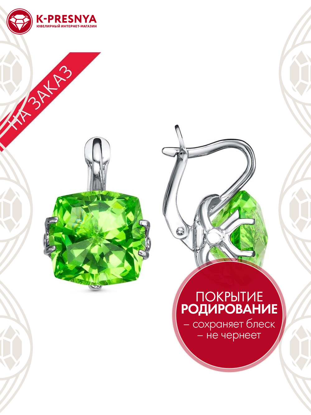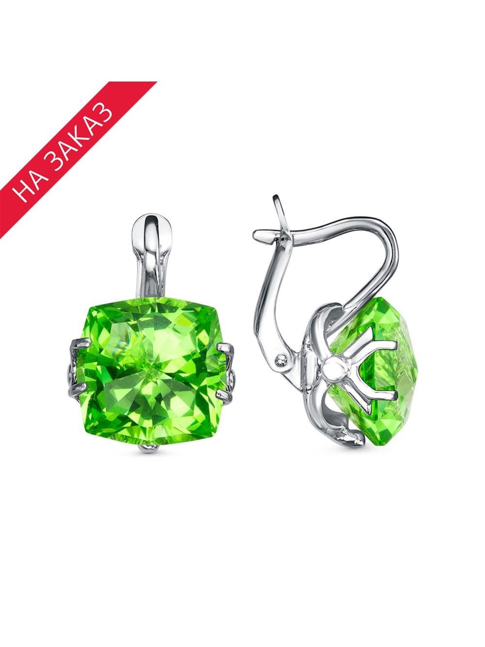Серьги серебро 925 пробы, покрытие - родирование, вставка - искусственный берилл
