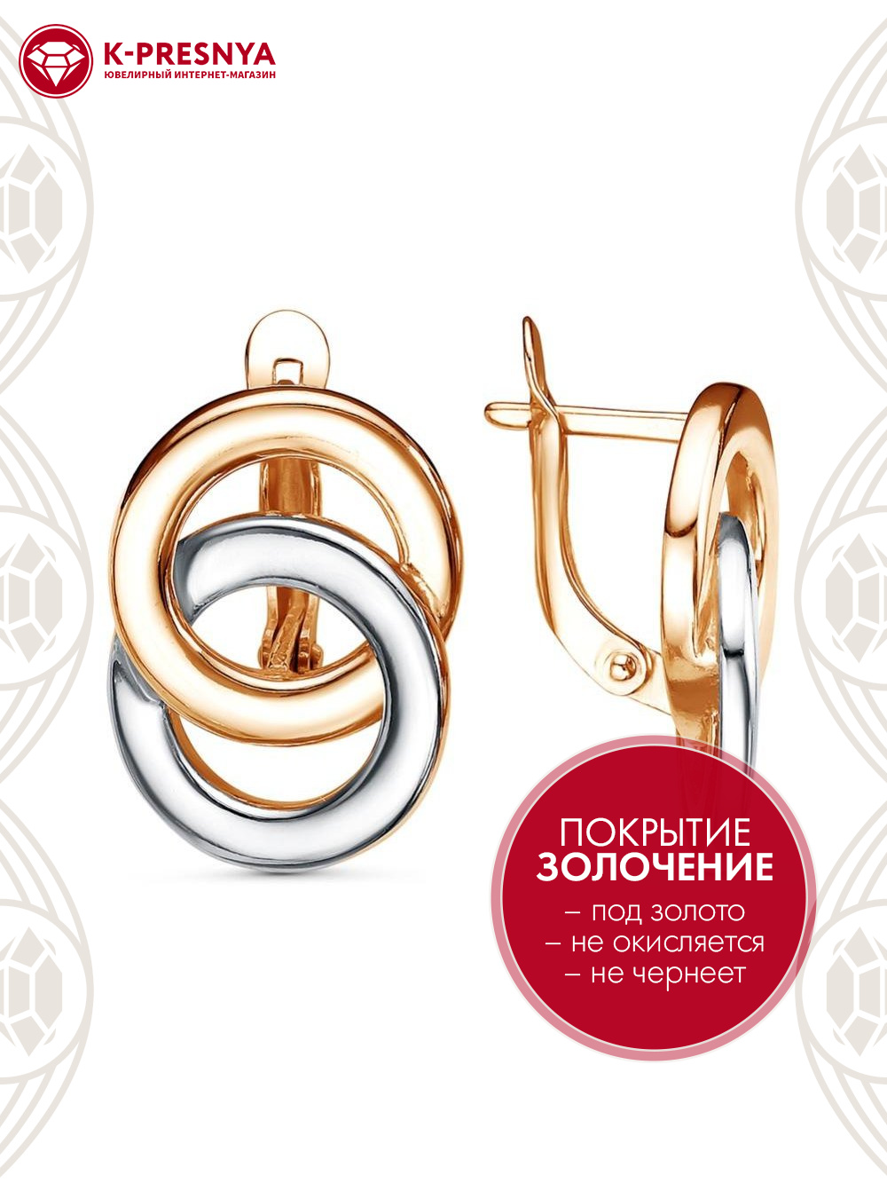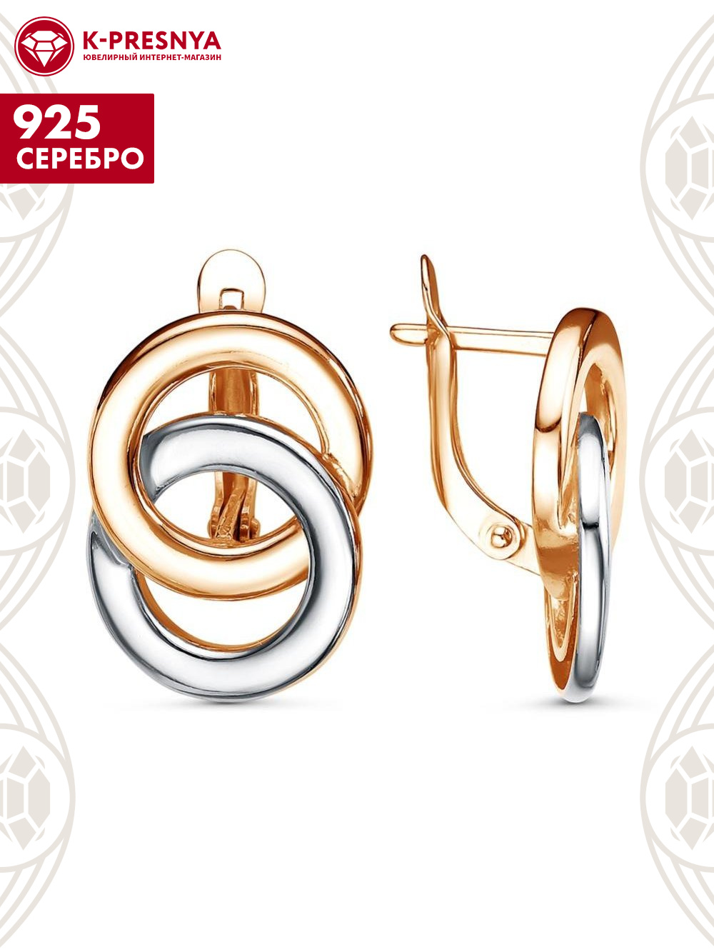 Серьги серебро 925 пробы, покрытие - золочение, выборочное родирование, без вставок