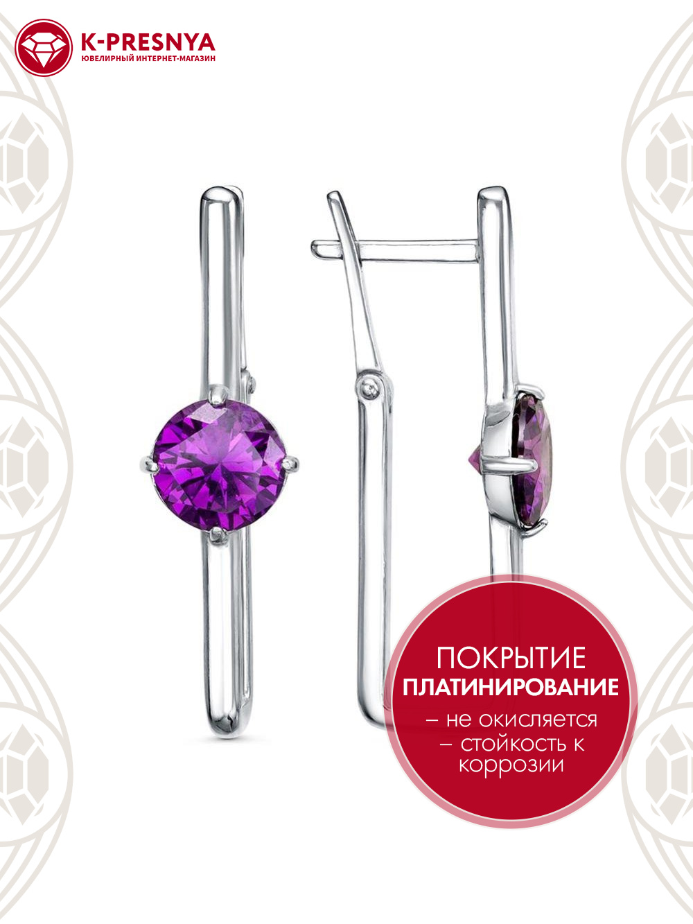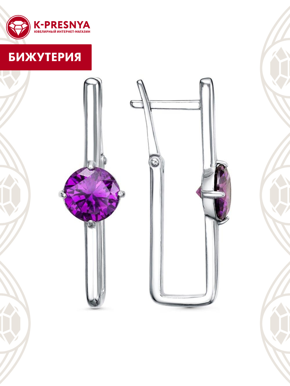 Серьги бижутерия, покрытие - платинирование, вставка - фианит (недрагоценный камень)