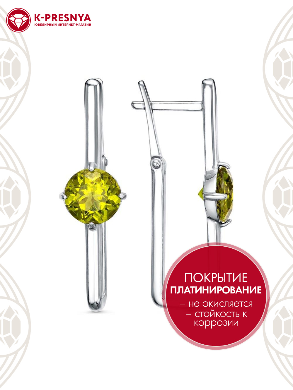 Серьги бижутерия, покрытие - платинирование, вставка - фианит (недрагоценный камень)