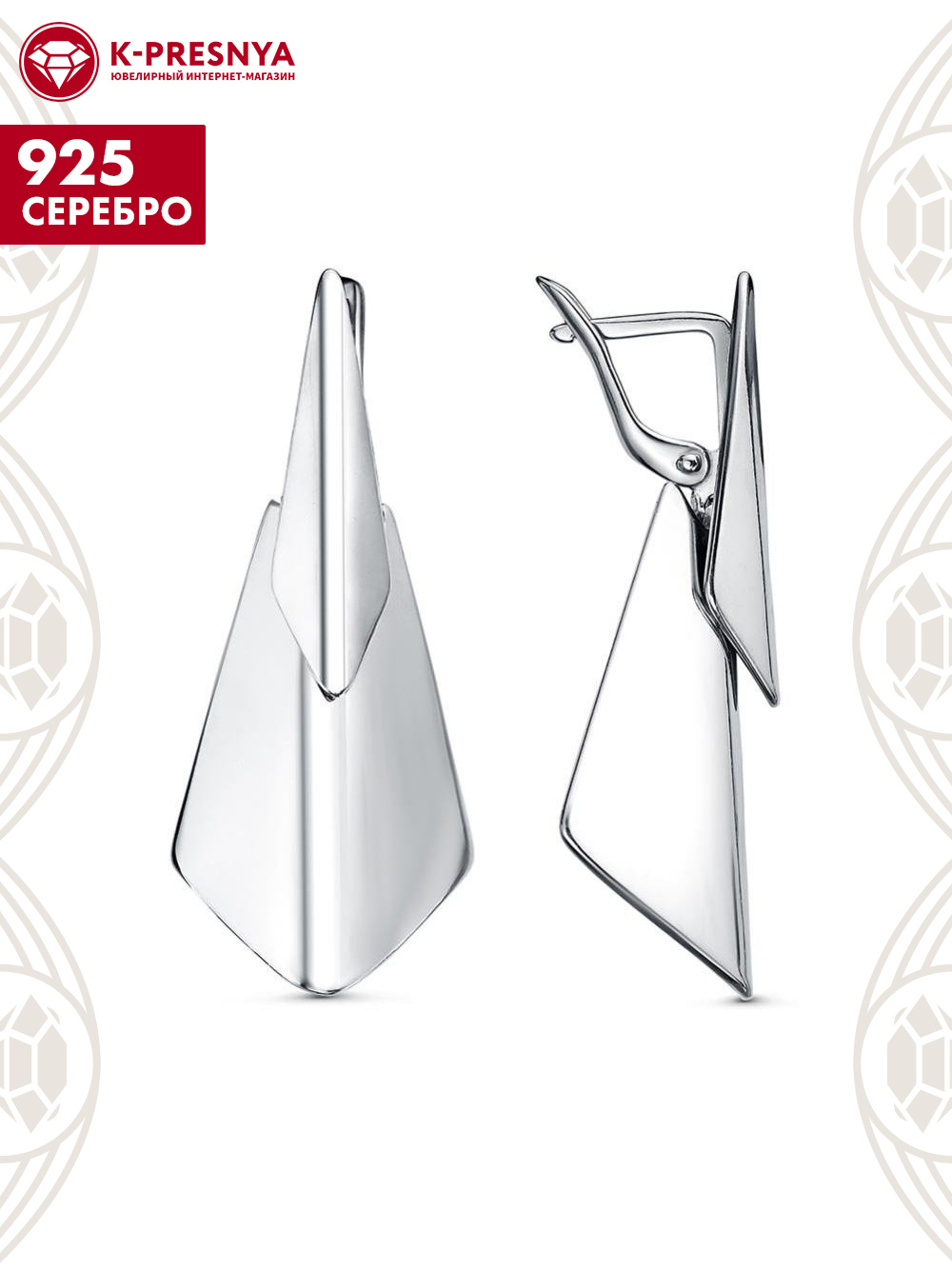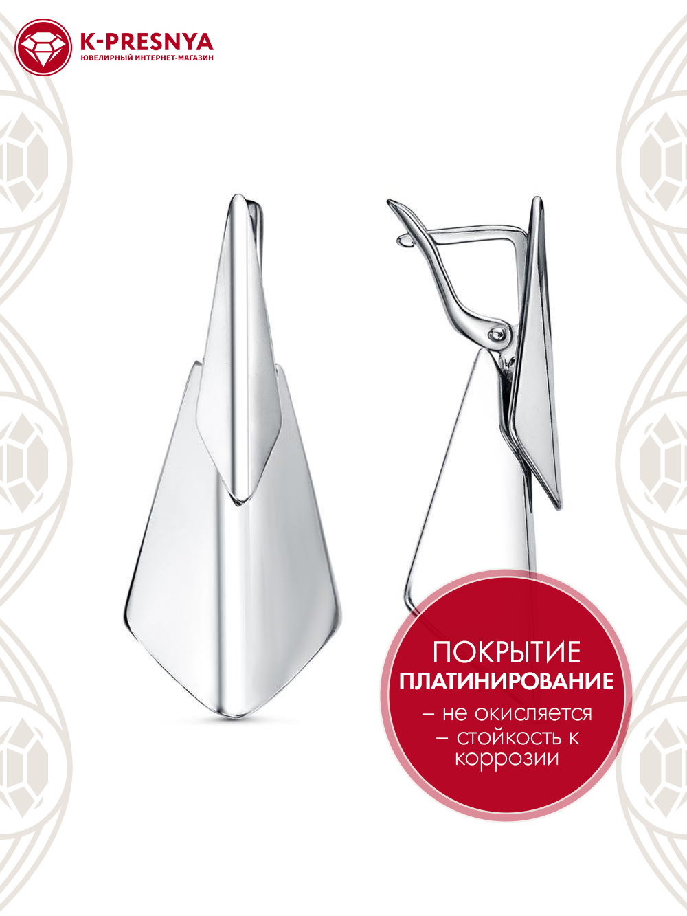 Серьги серебро 925 пробы, покрытие - платинирование, без вставок