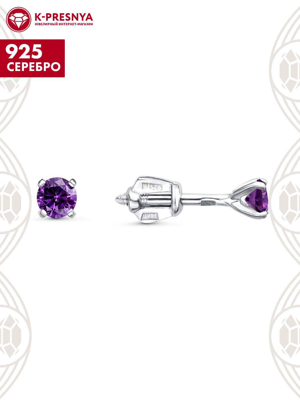 Серьги серебро 925 пробы, покрытие - платинирование, вставка - фианит (недрагоценный камень)