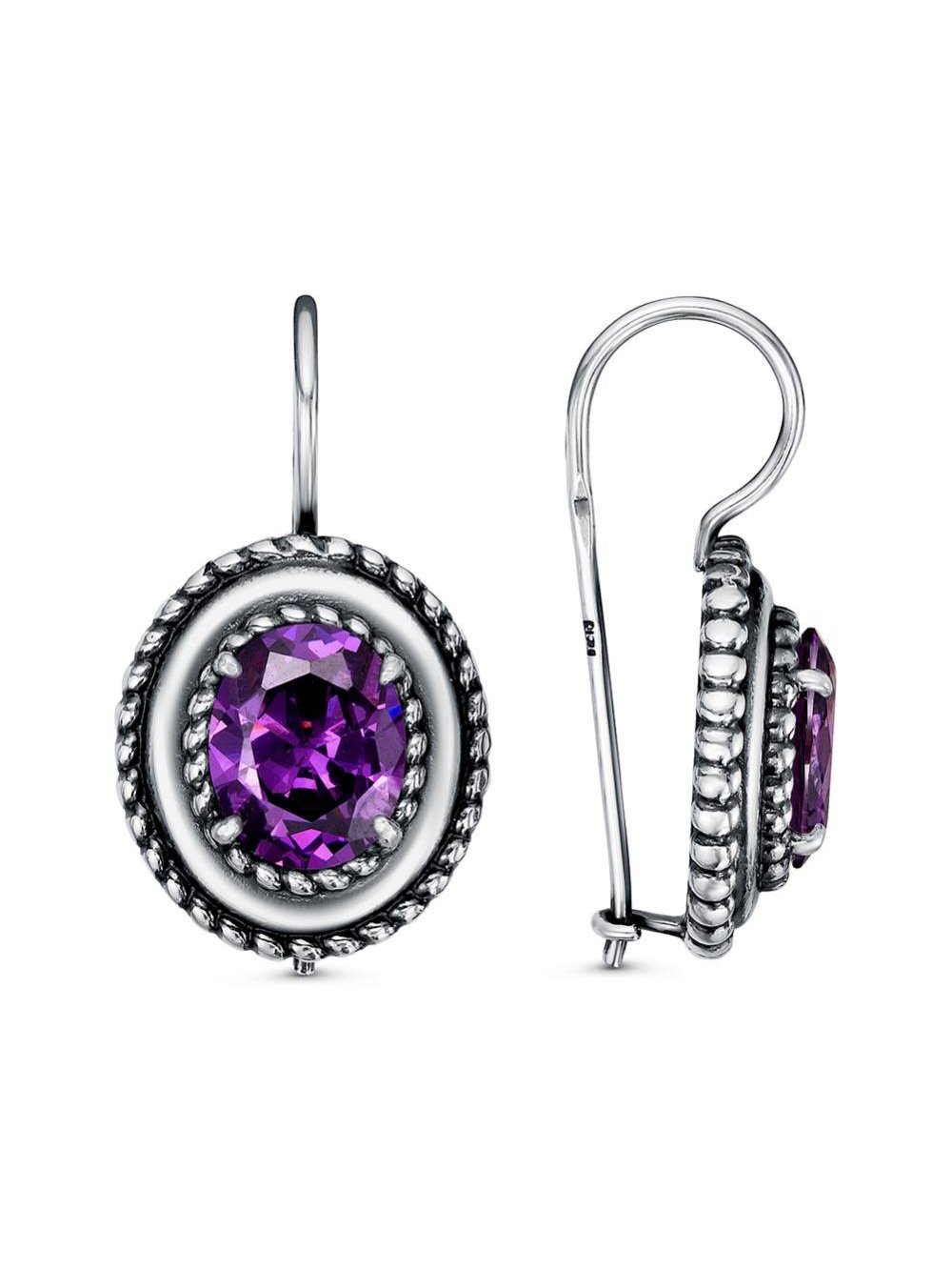 Серьги бижутерия, покрытие - серебрение с оксидированием, вставка - фианит (недрагоценный камень)