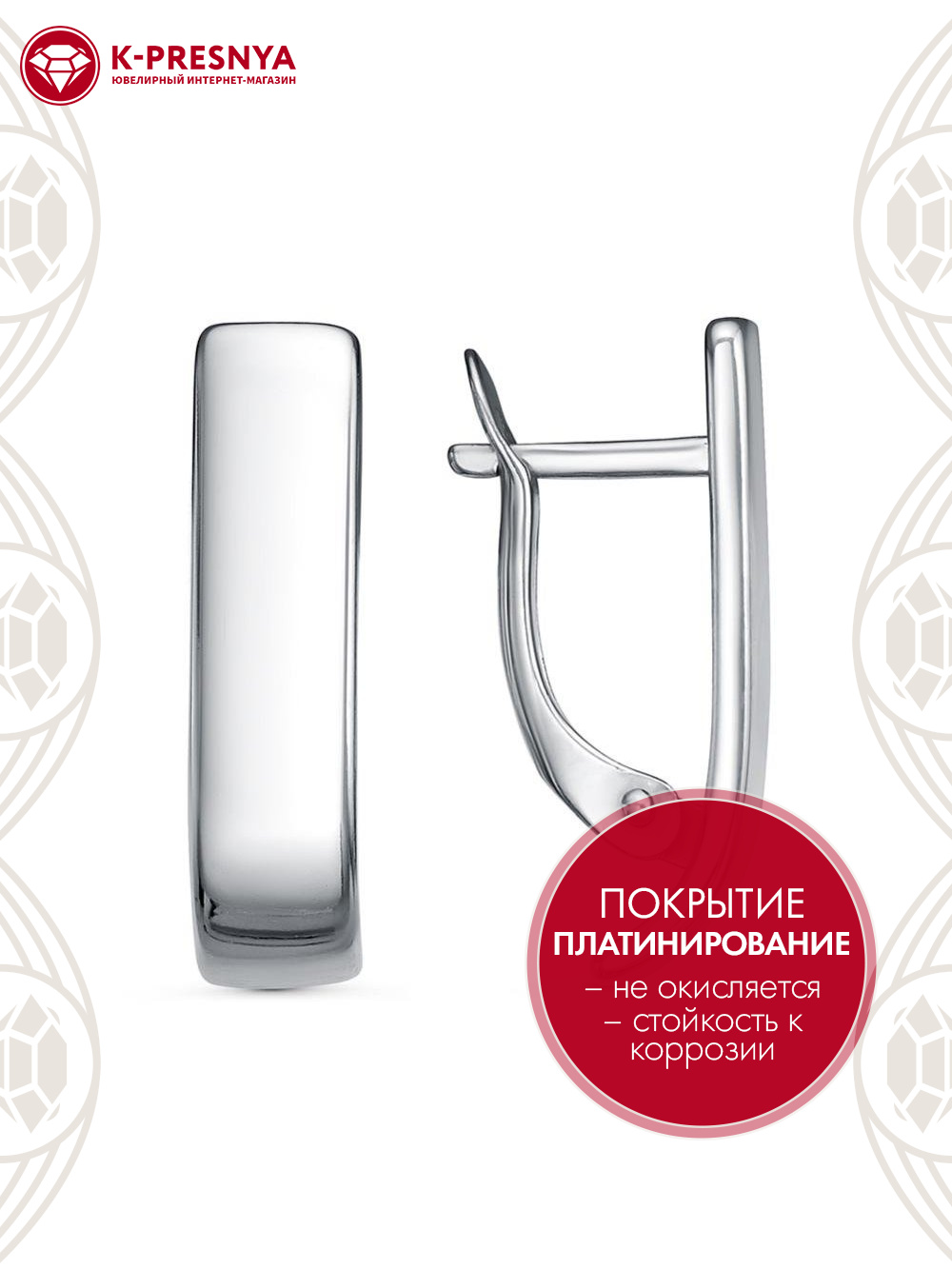 Серьги бижутерия, покрытие - платинирование, без вставок