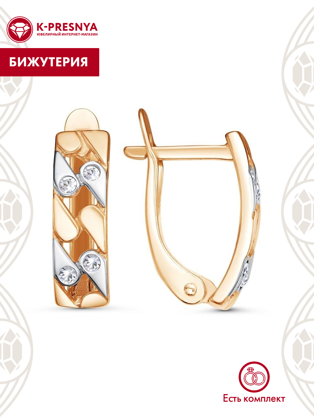 Серьги бижутерия, покрытие - золочение, выборочное родирование, вставка - стекло ювелирное preciosa