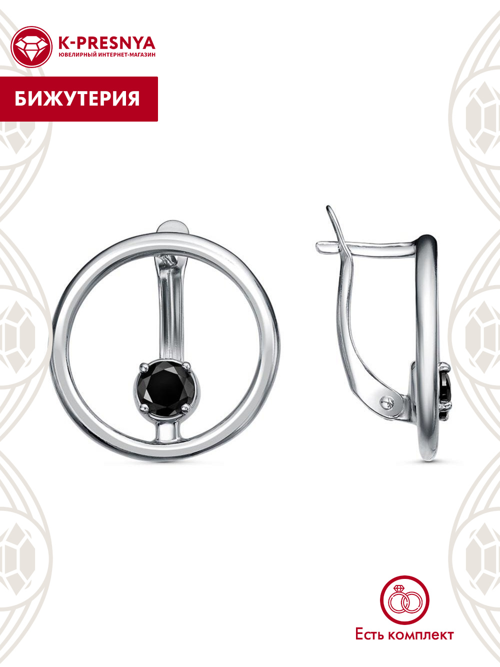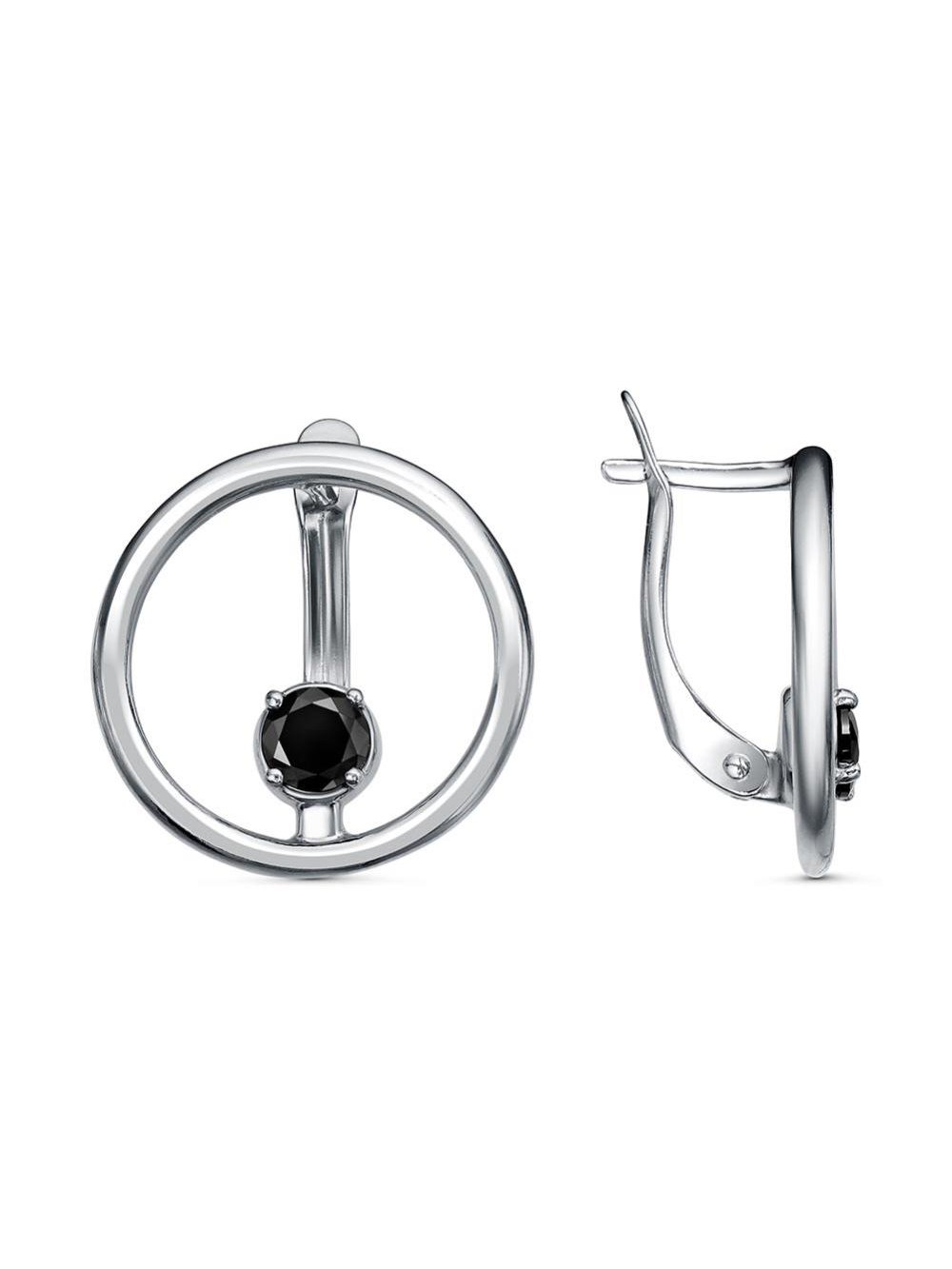 Серьги бижутерия, покрытие - серебрение с оксидированием, вставка - фианит (недрагоценный камень)